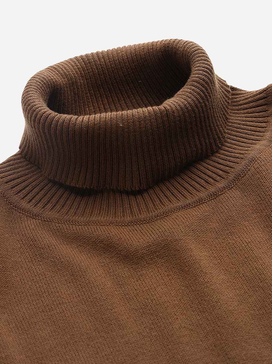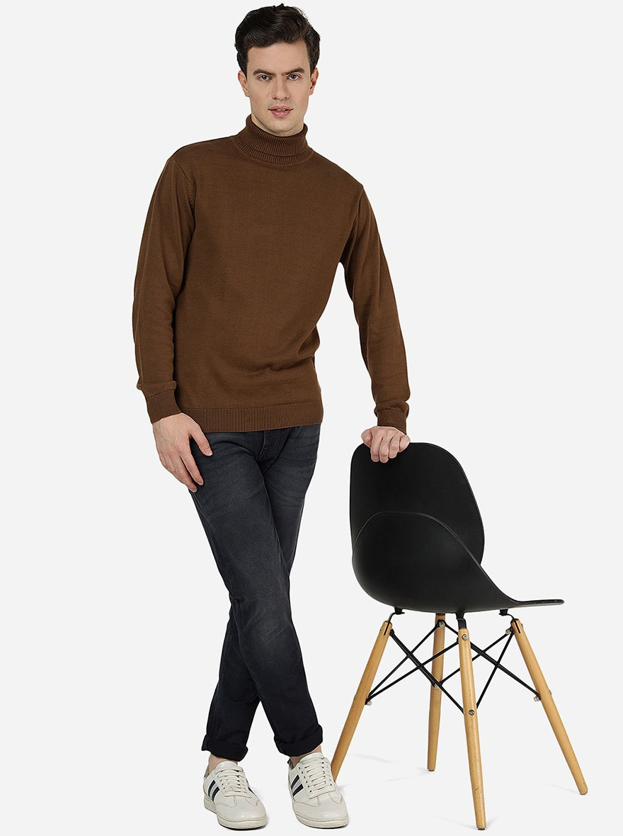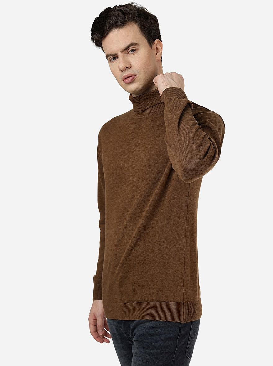 Brown Solid Slim Fit Winter T-Shirt | JadeBlue