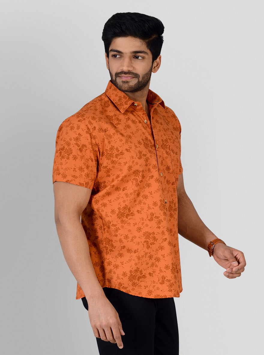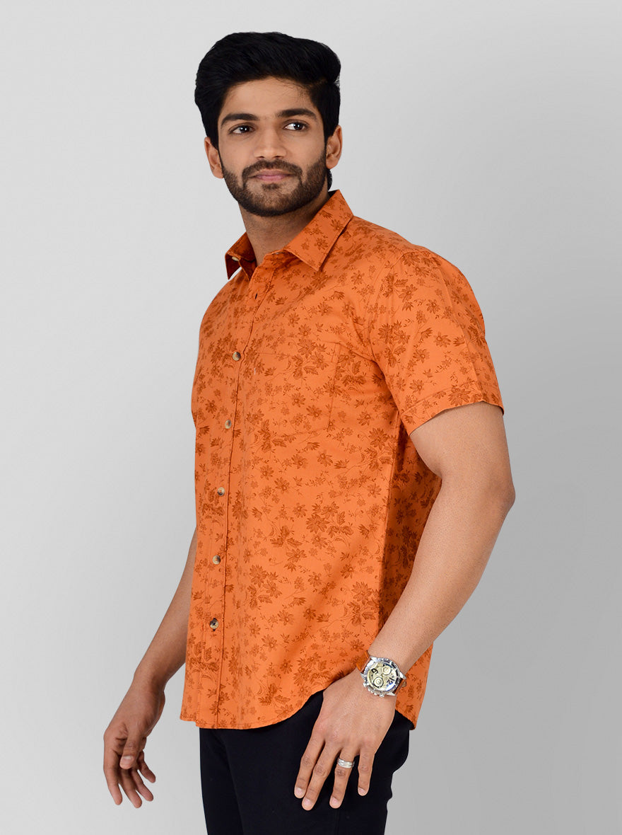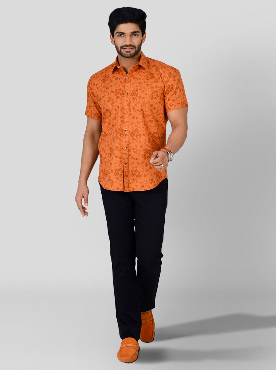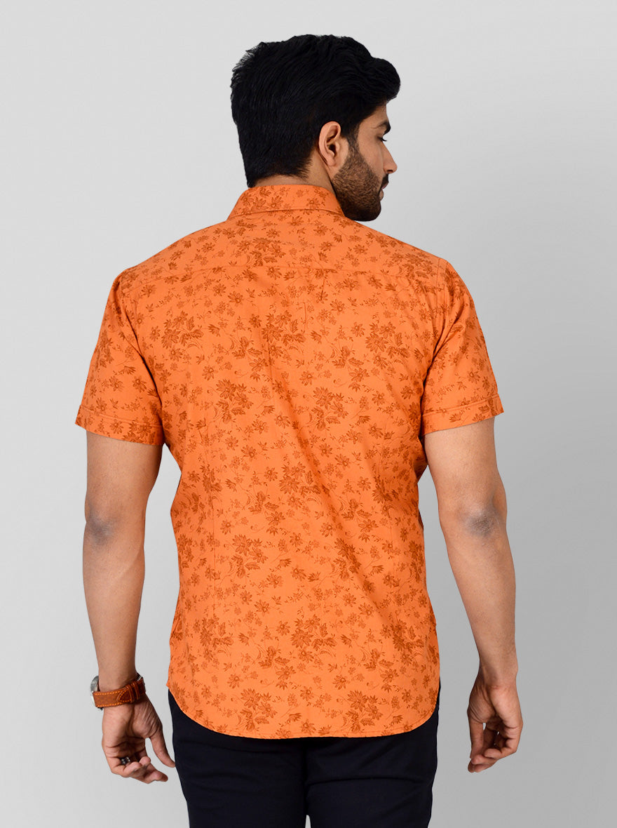 Burnt Orange Printed Smart Fit Casual Shirt | Greenfibre