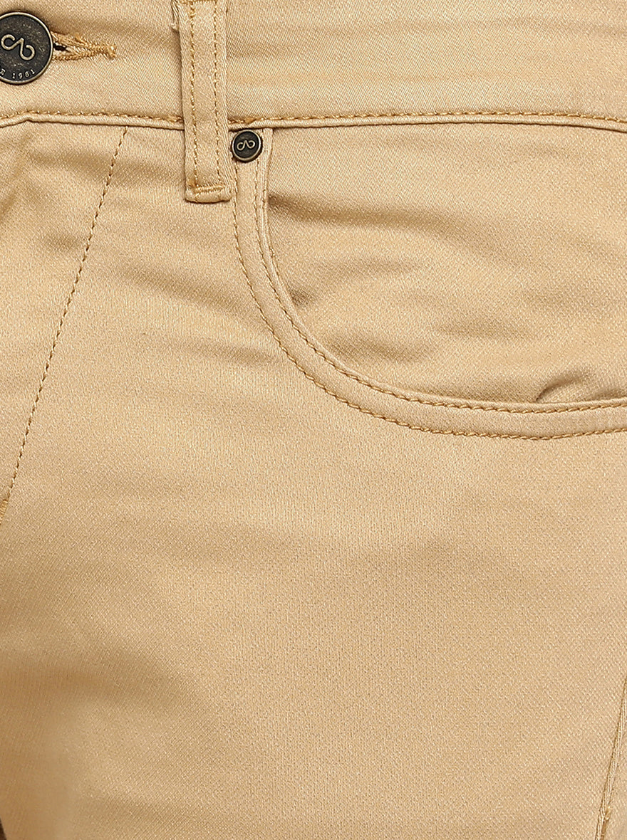 Details: Get yourself a smart and wel-fitted Jeans by investing in this Camel Brown jeans from the latest collection of JadeBlue. It features a button and a zip closure. It comes with three pockets on the front, one being the coin pocket and two at the back. Tailored to a Slim-fit. It is adorned with a solid pattern with a washed look, making it a trendy choice. It is perfect for casual wear. Crafted with cotton stretch, it assures you the best of comfort and ease during long hours. Team it with a t-shirt of your choice and white sneakers and you are good to go.