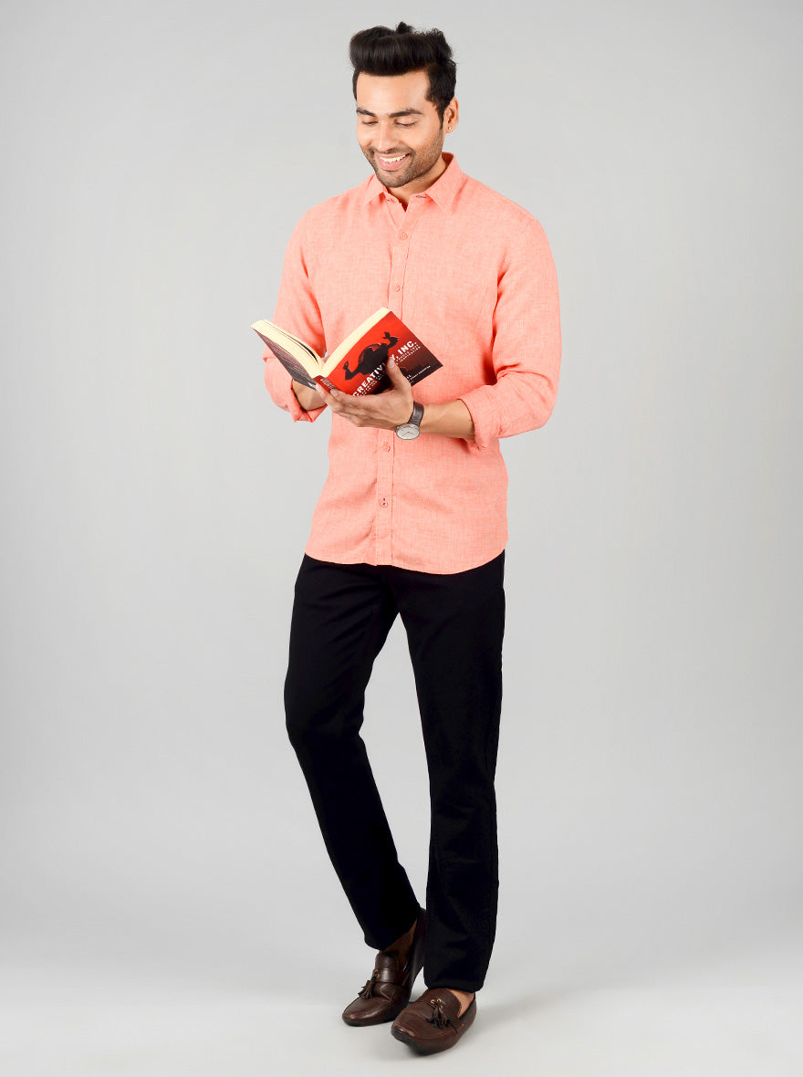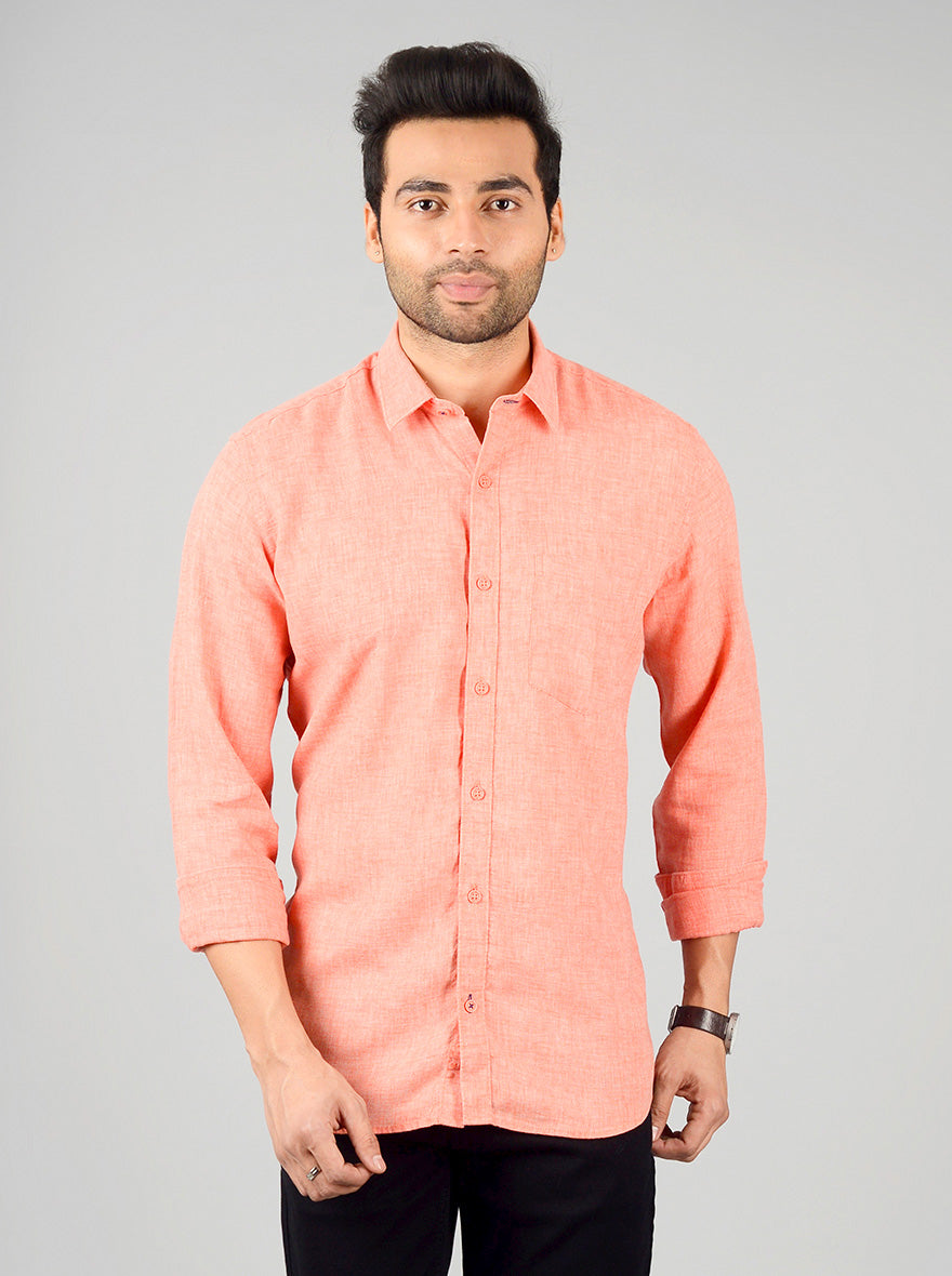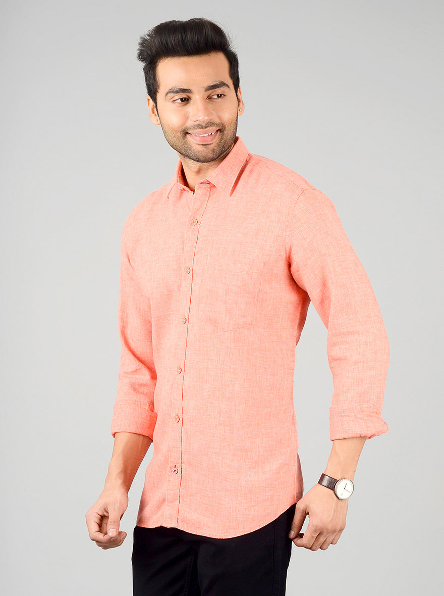 Camellia Orange Solid Slim Fit Casual Shirt | JadeBlue