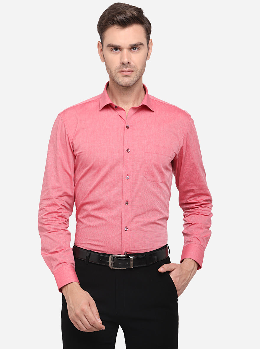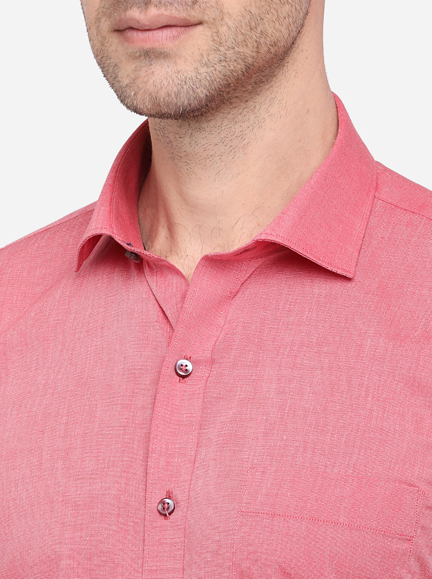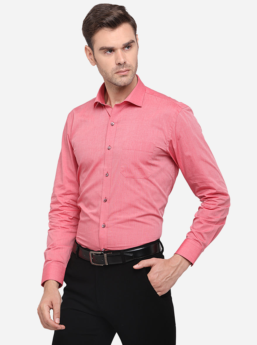 Carrot Pink Solid Regular Fit Formal Shirt | Greenfibre