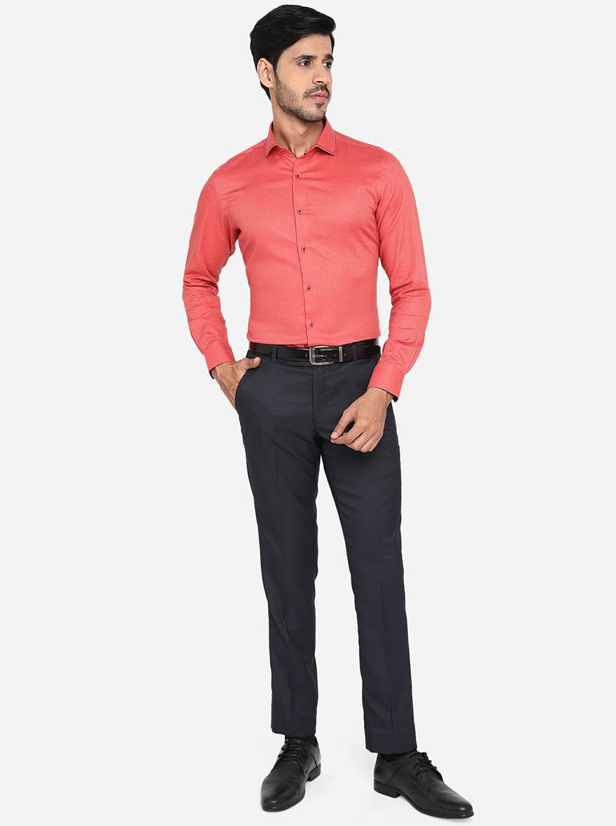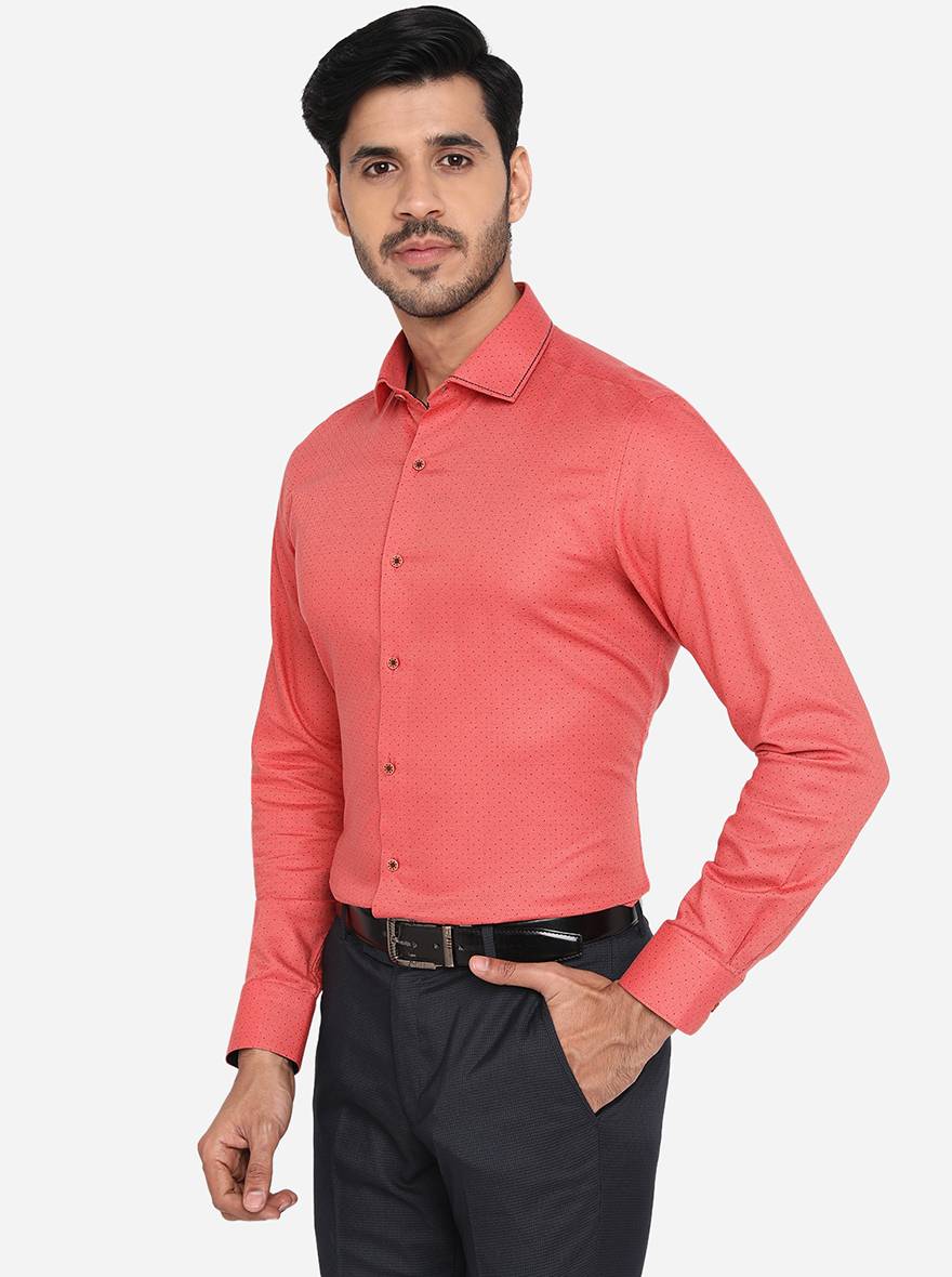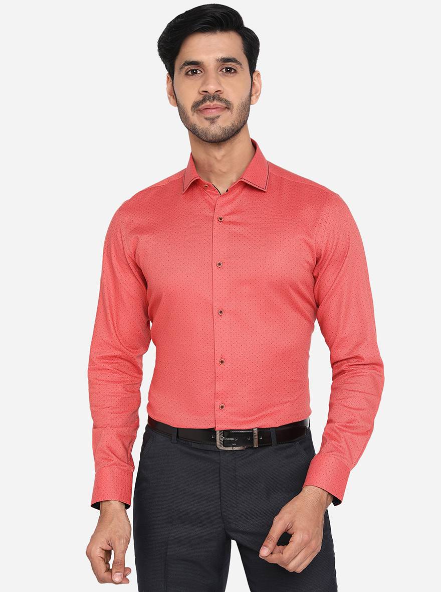 Carrot Red Solid Slim Fit Party Wear Shirt | JB Studio