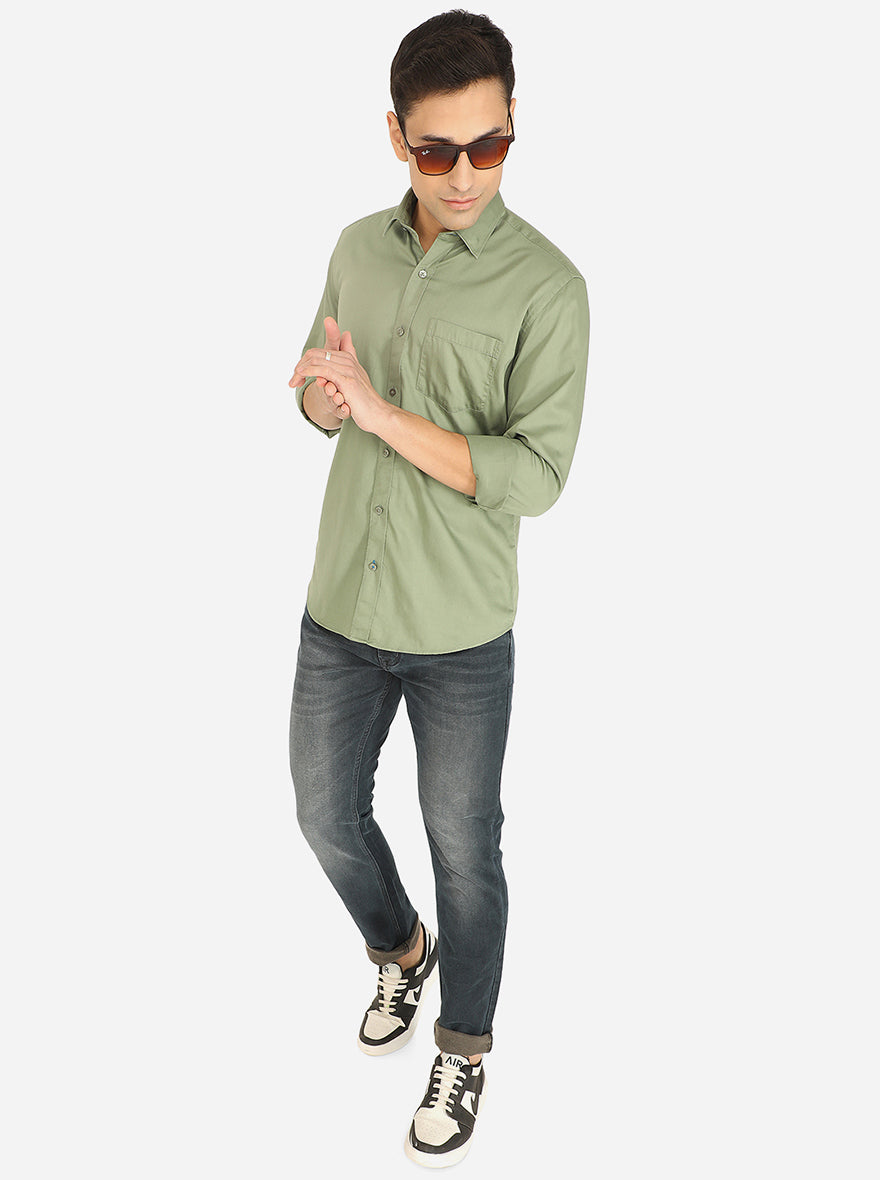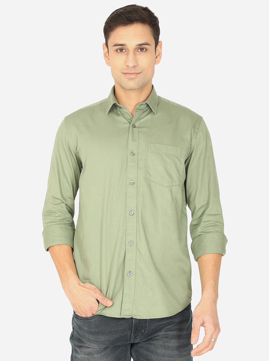 Celery Green Solid Smart Fit Casual Shirt | Greenfibre
