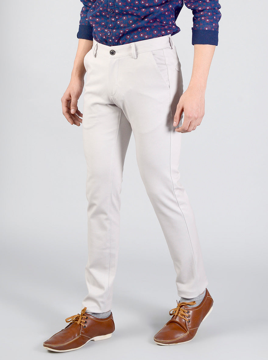 Details: This pair of grey trousers will let you achieve a smart yet polished look. Made from cotton blend fabric, this pair of slim fit casual trousers features belt loops, zip fly, single button closure and 4 functional pockets. It will prove to be a valuable addition to your wardrobe.