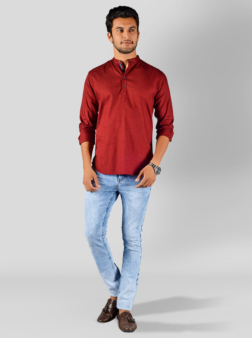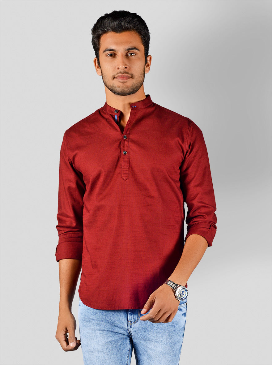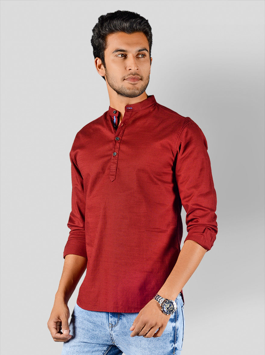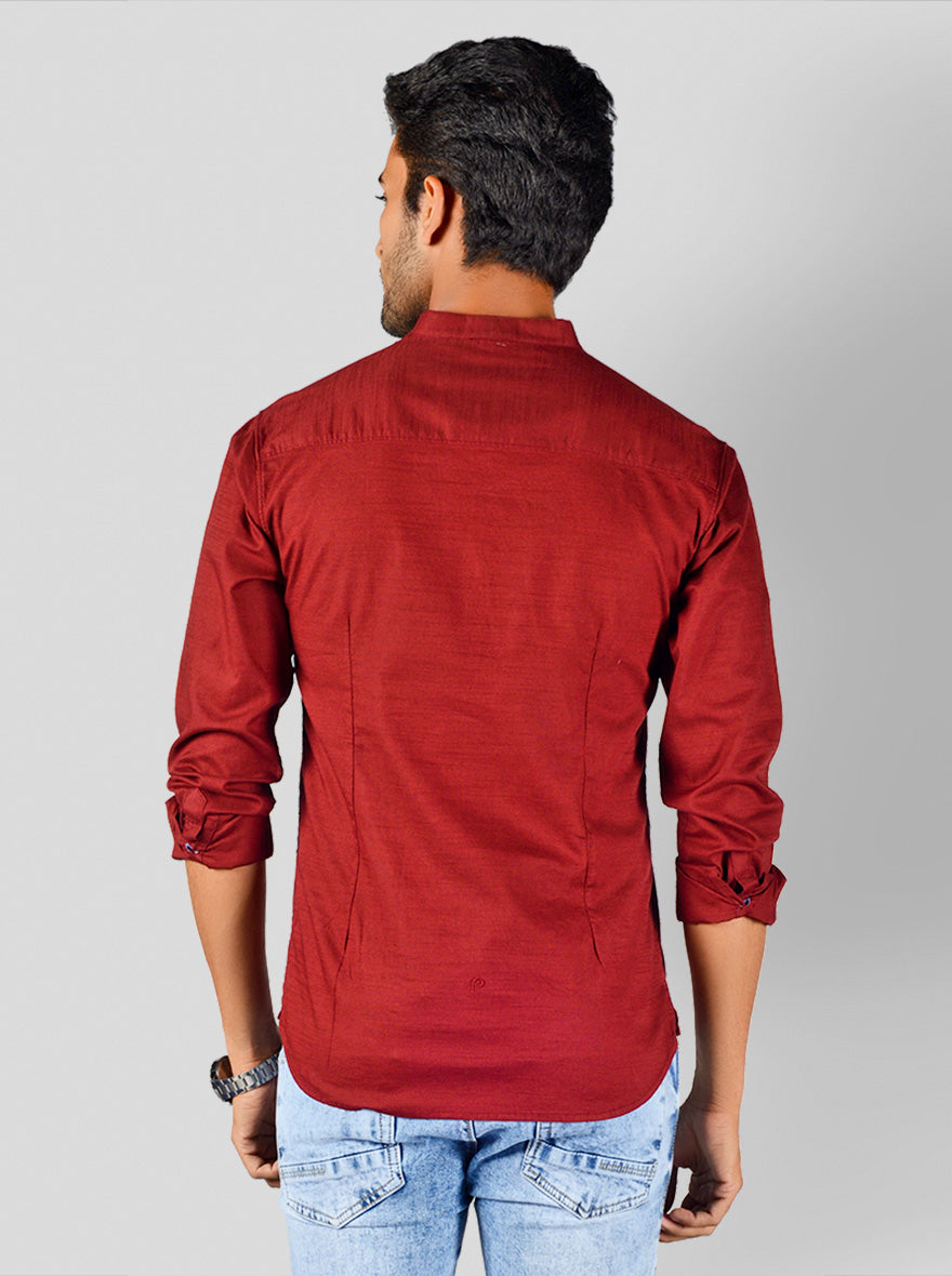 Details: If you love wearing plain shirts, then this solid red shirt by Greenfibre will definitely meet your style needs. Made from cotton fabric, it will prove to be your best style companion. It features comfy mandarin collar, full sleeves and short button placket in the front.