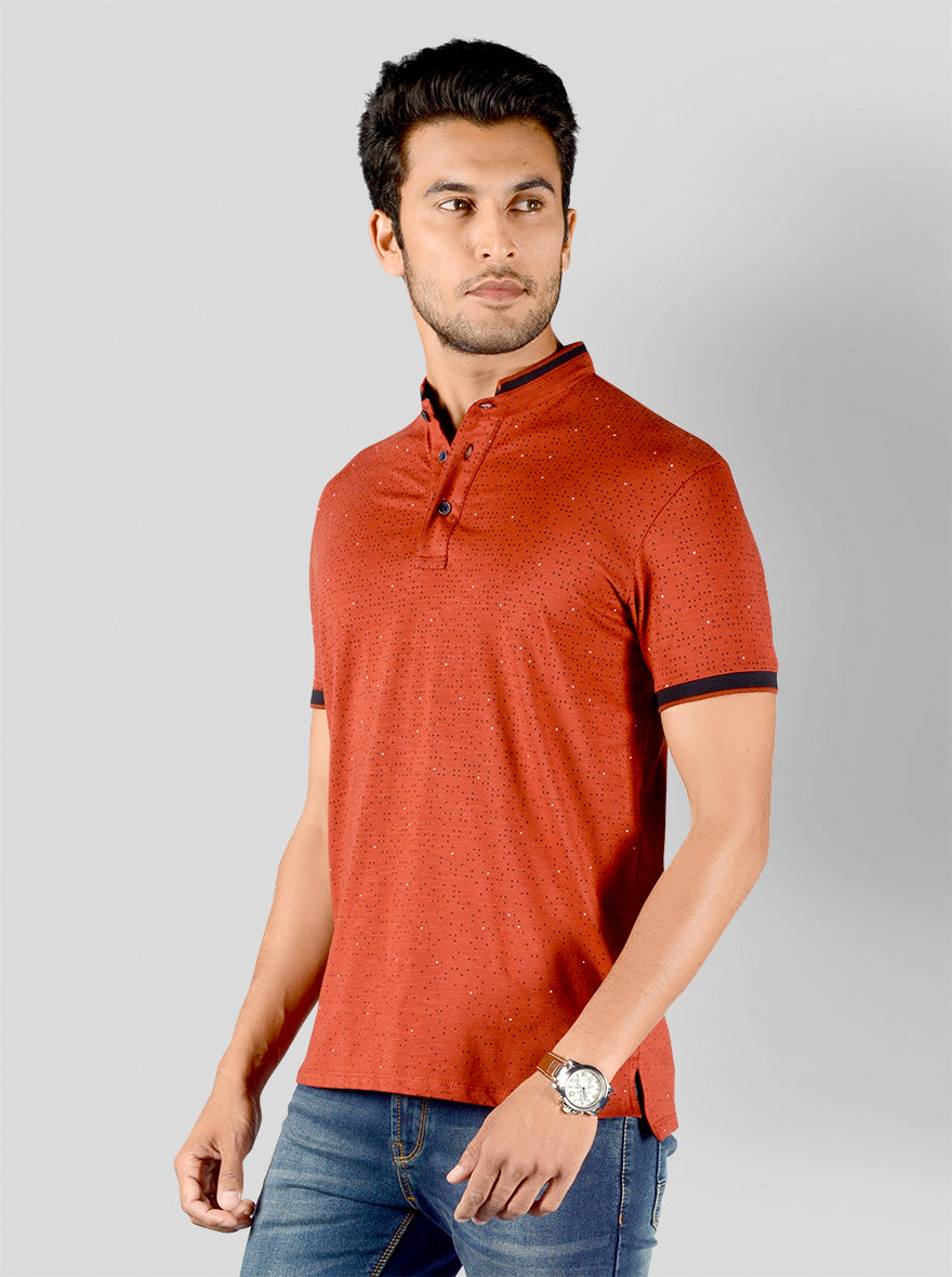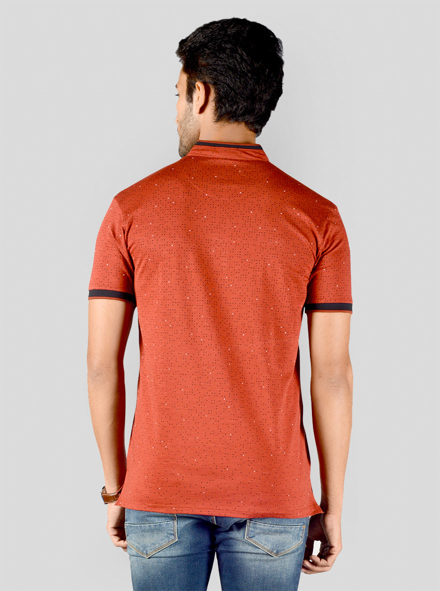 Cinnamon Red Printed Slim Fit Polo T-shirt | JadeBlue
