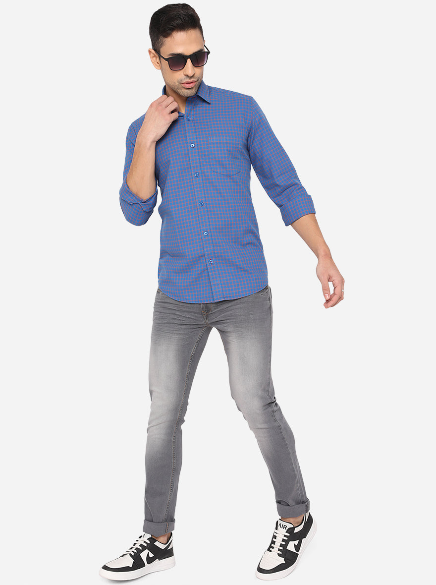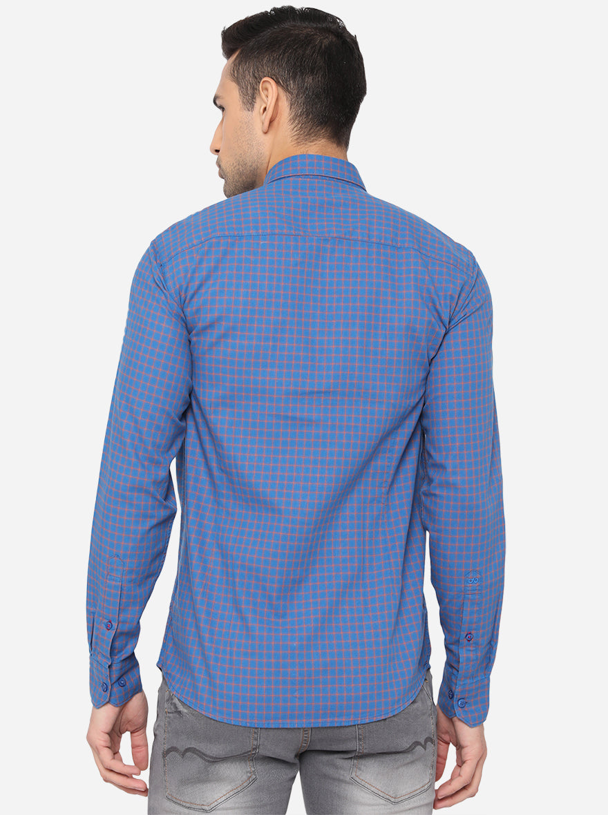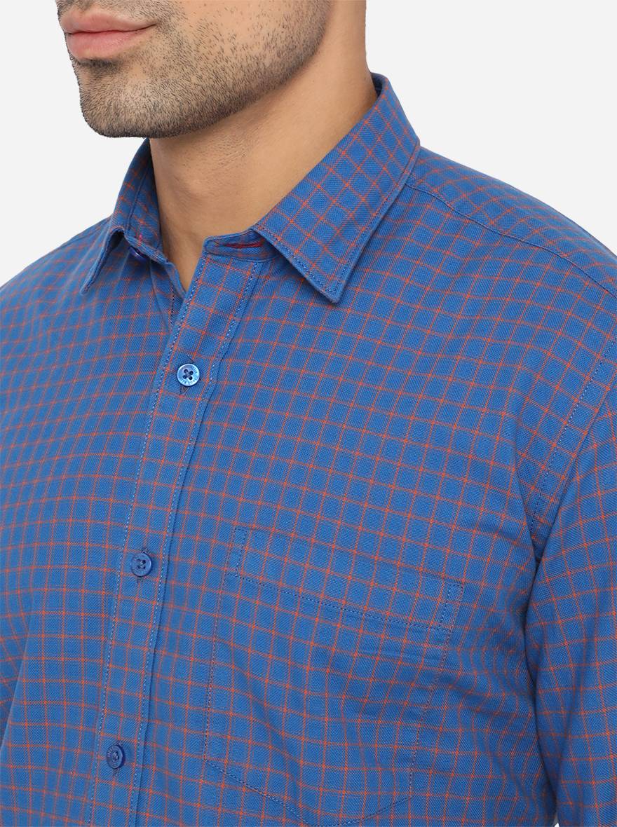 Cobalt Blue Checked Slim Fit Casual Shirt | JadeBlue