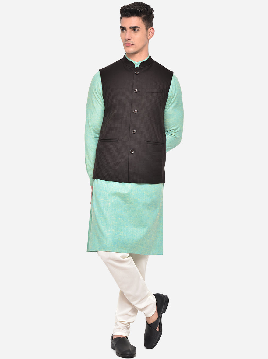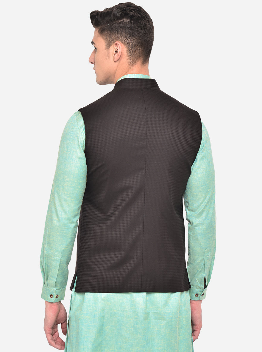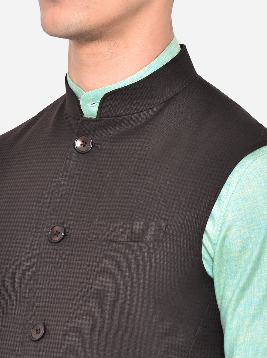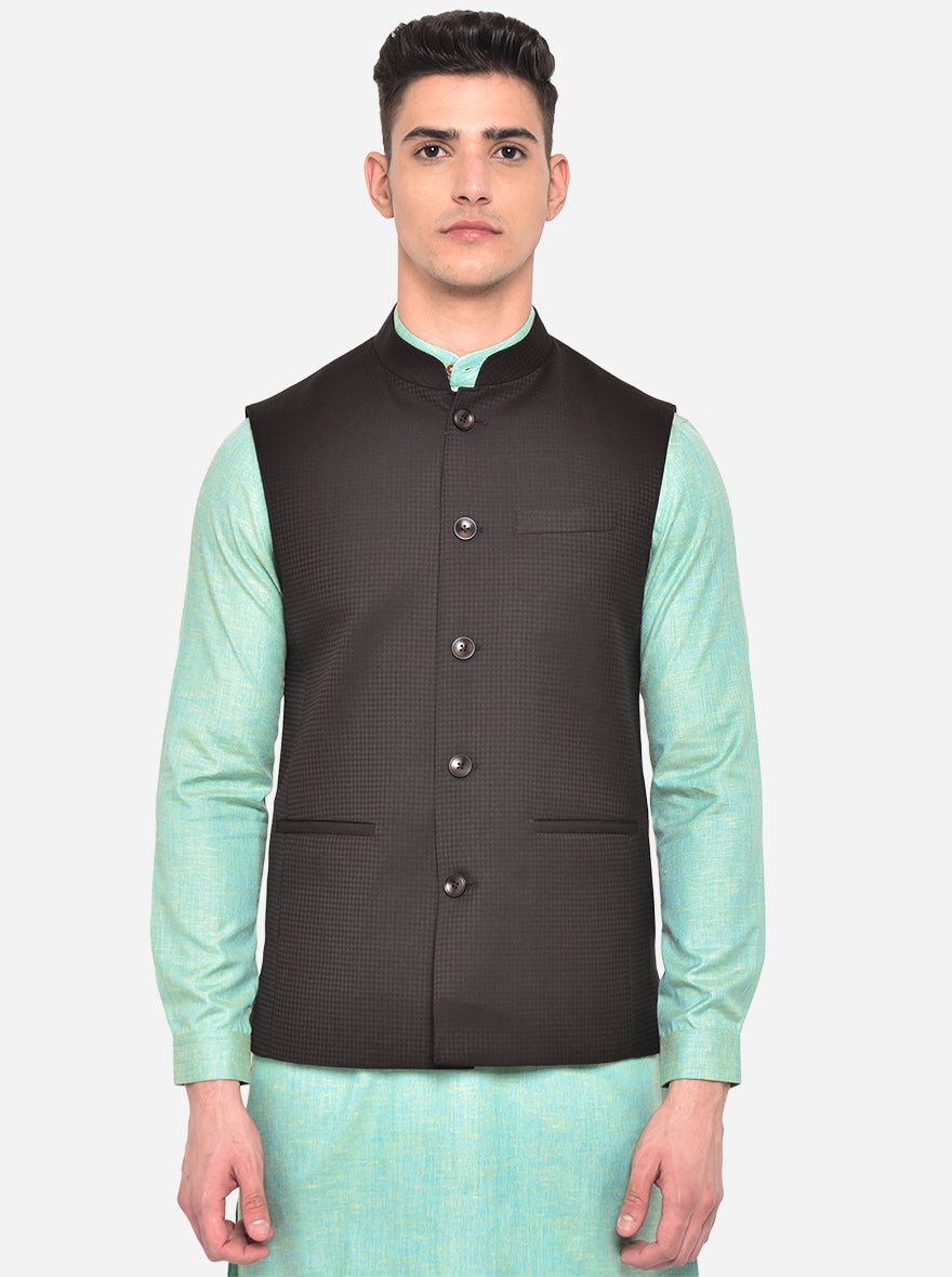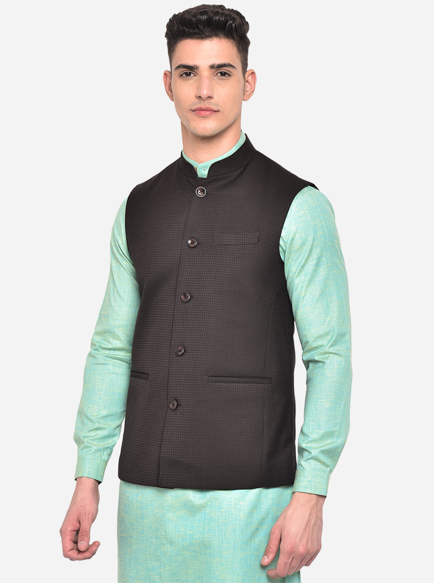 Details: Here's the chance to steal the limelight of the occasion, jadeblue has brought you the range of stylish men's coffee brown regular fit modi jackets with checked pattern. Fabricated with high-quality terry rayon, it makes you feel absolutely comfortable and goes really well with your ethnic attire. Book this for yourself before you get to lose it.