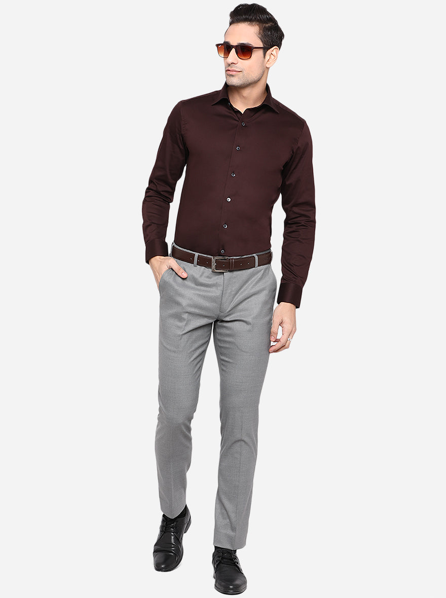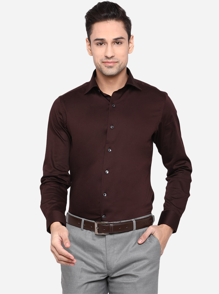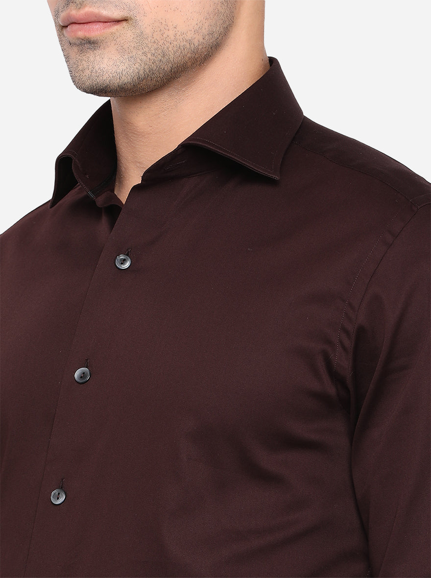Coffee Brown Solid Slim Fit Party Wear Shirt | Wyre
