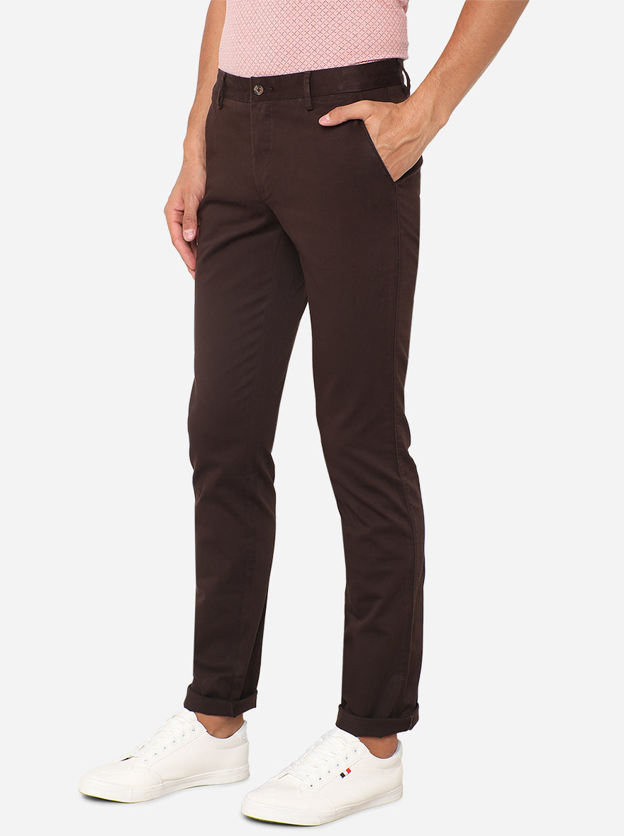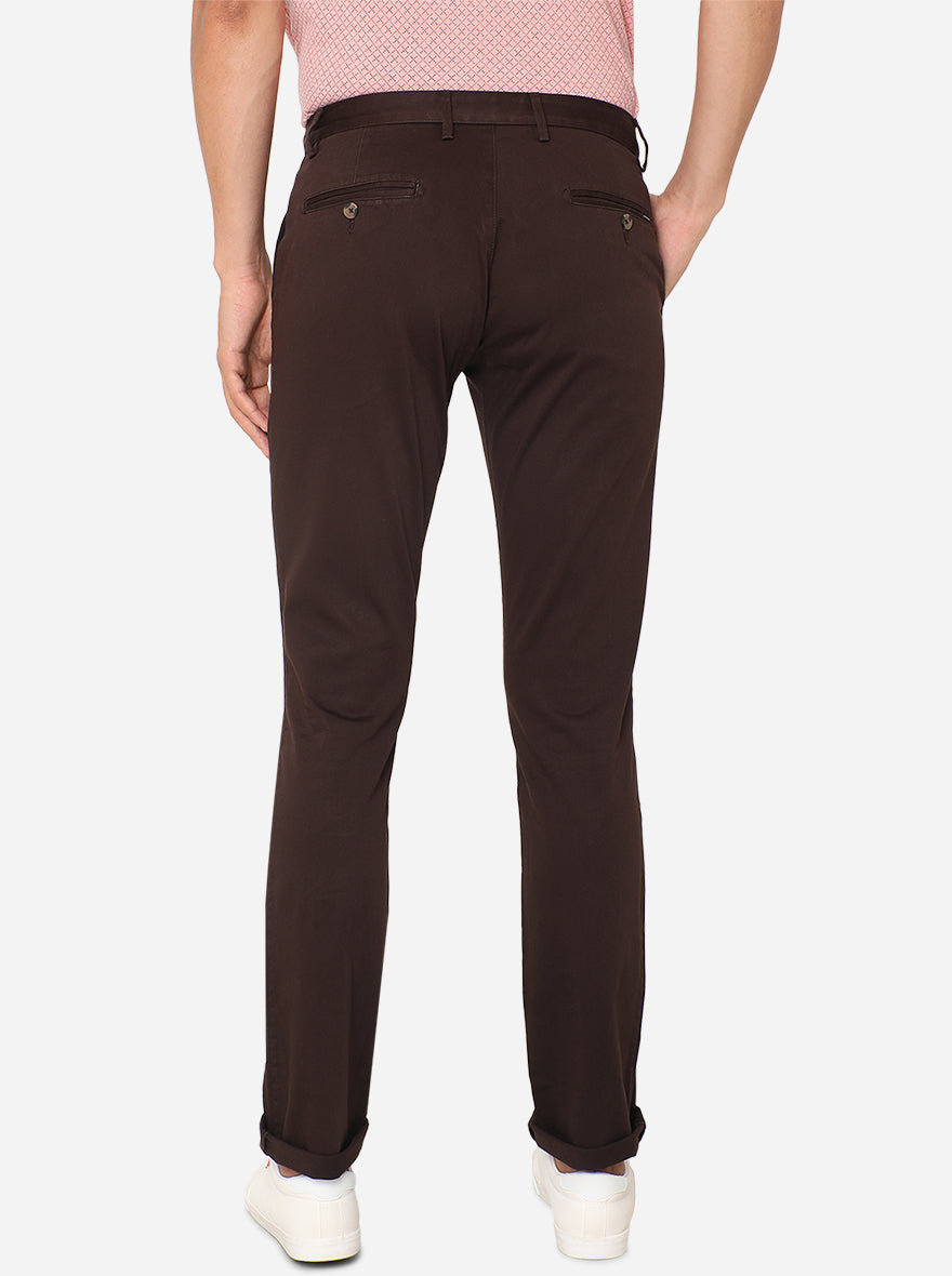 Coffee Brown Solid Super Slim Fit Casual Trouser | Greenfibre