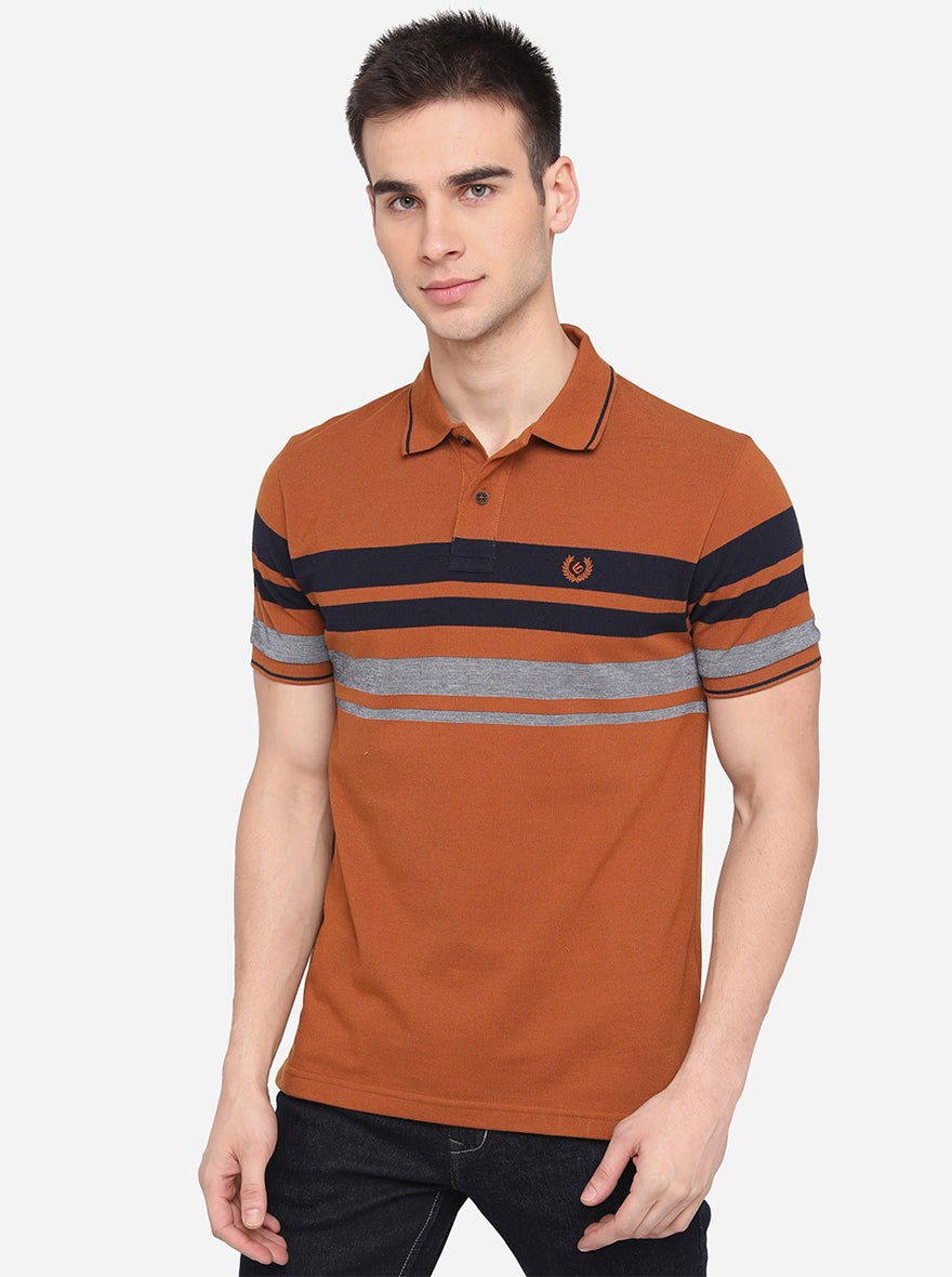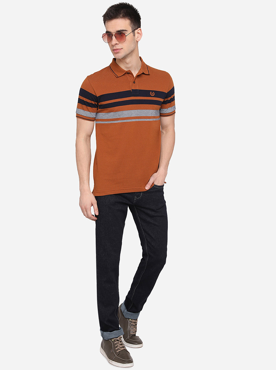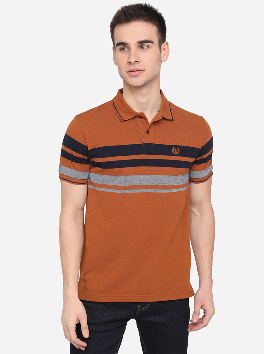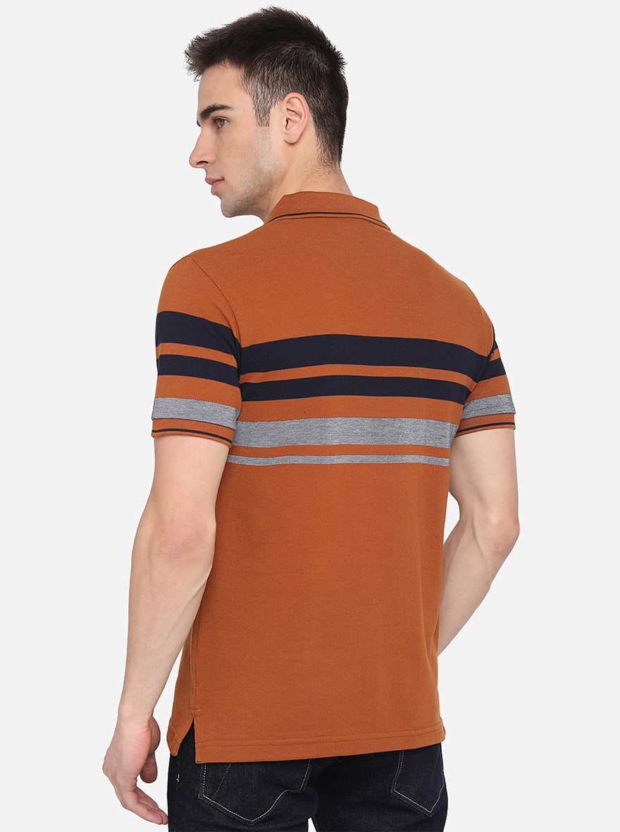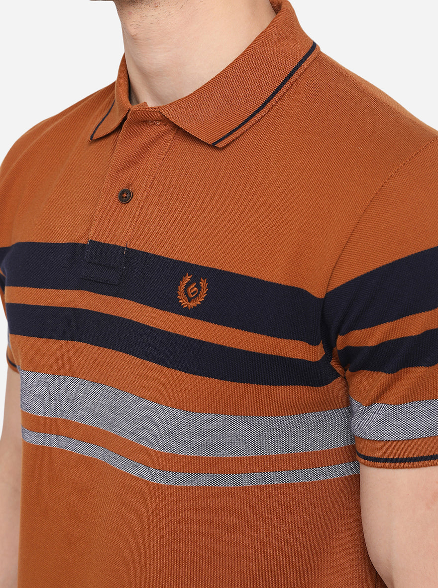 Copper Brown Striped Slim Fit Polo T-Shirt | Greenfibre