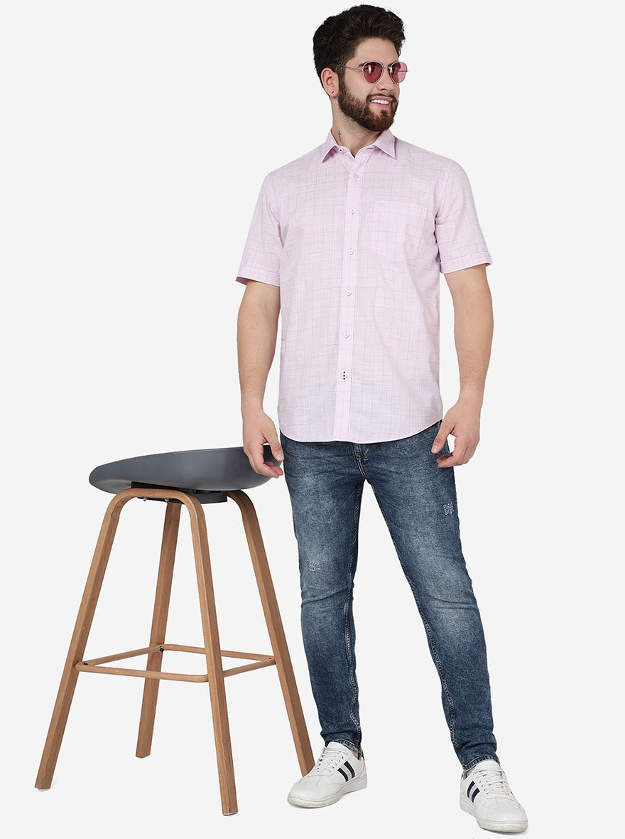 Cradle Pink Checked Slim Fit Semi Casual Shirt | JadeBlue