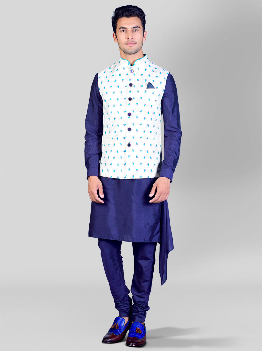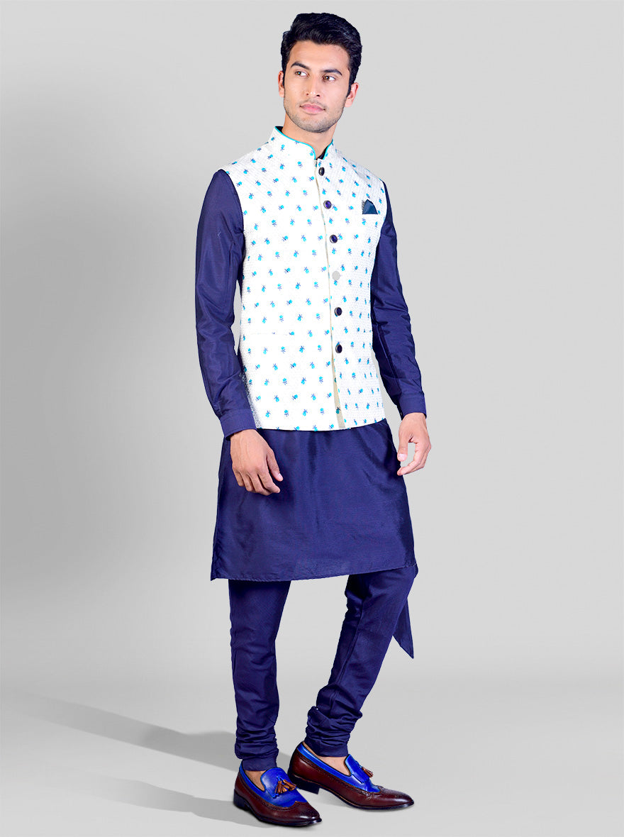 Style Tip: It is clubbed with navy blue kurta, churidar and maroon loafers. For polished dapper look, you can choose to style it with white churidar, minimal accessories and jodhpuris. Best suitable for social functions, events and festive occasions.
