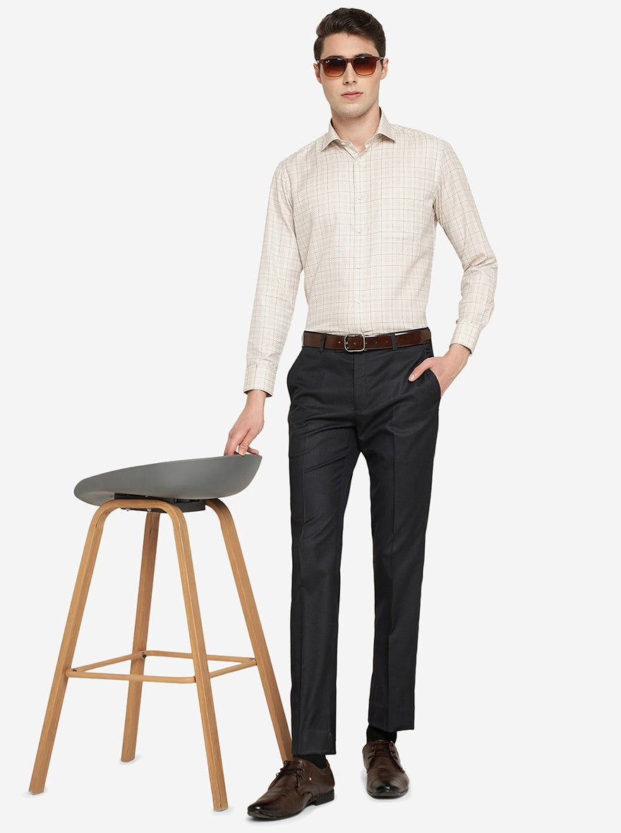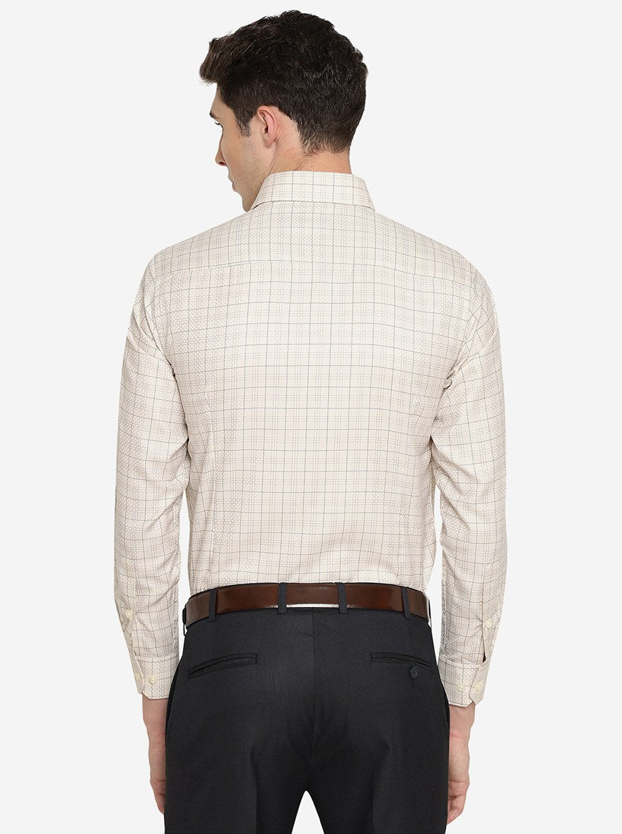 Cream Checked Slim Fit Formal Shirt | Greenfibre