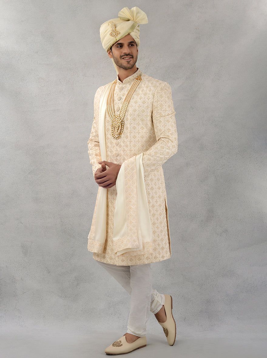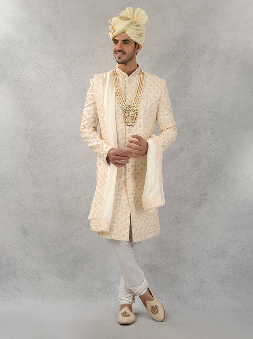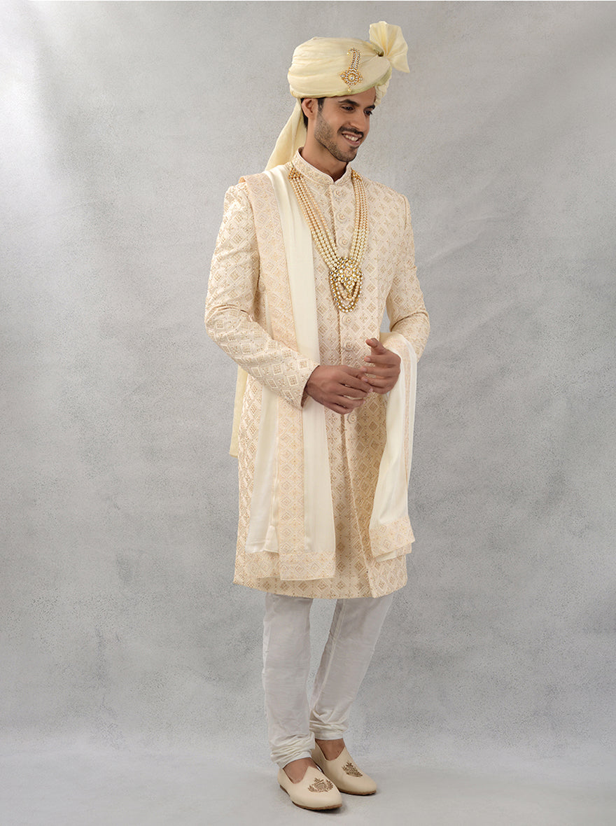 Cream & Gold Sherwani | Azania