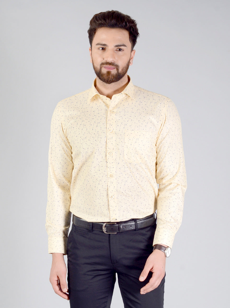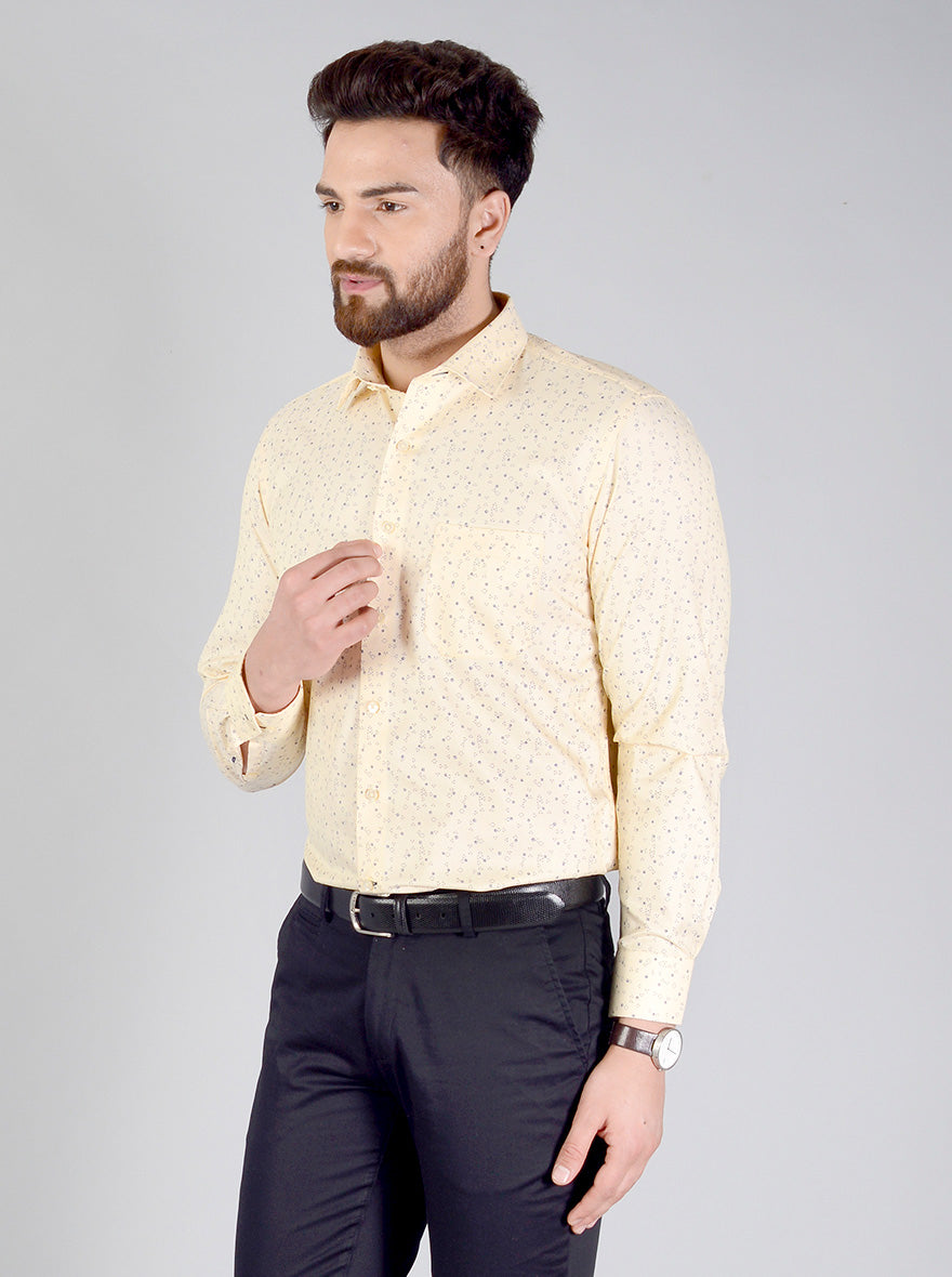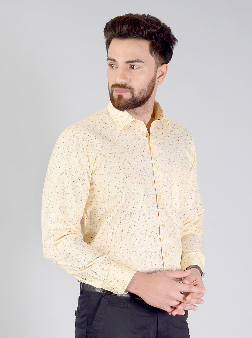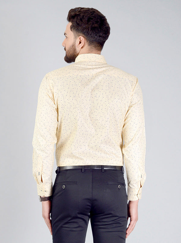 Cream Printed Regular Fit Formal Shirt | Greenfibre