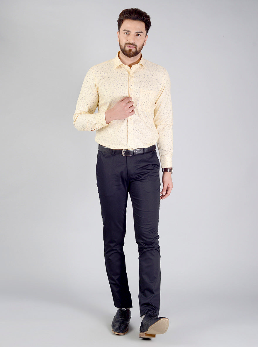 Details: This printed cream formal shirt will leave an everlasting impression on the onlookers. Made from cotton blend fabric, this regular fit shirt features chest pocket, shirt collar and buttons in the front.