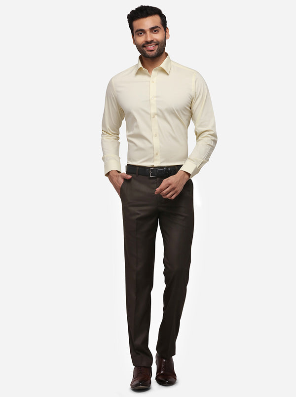 Cream Solid Slim Fit Formal Shirt | Greenfibre