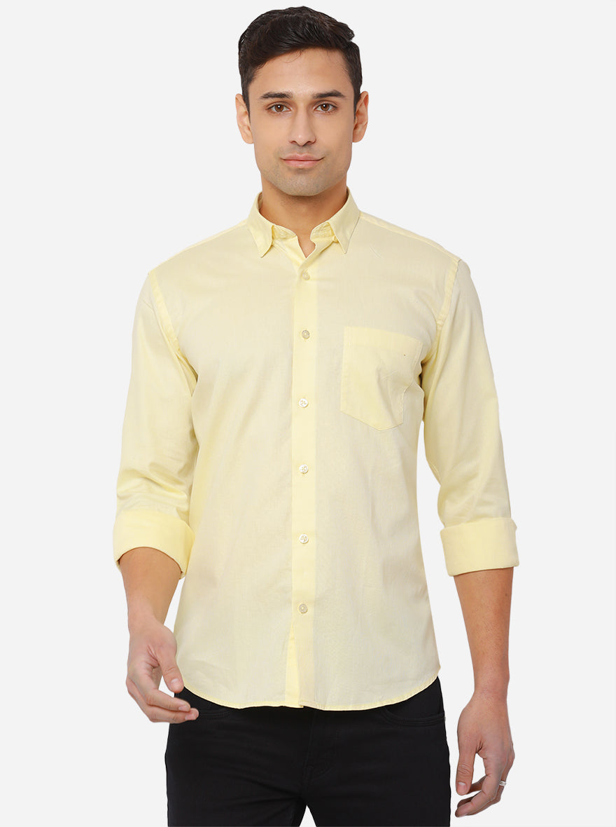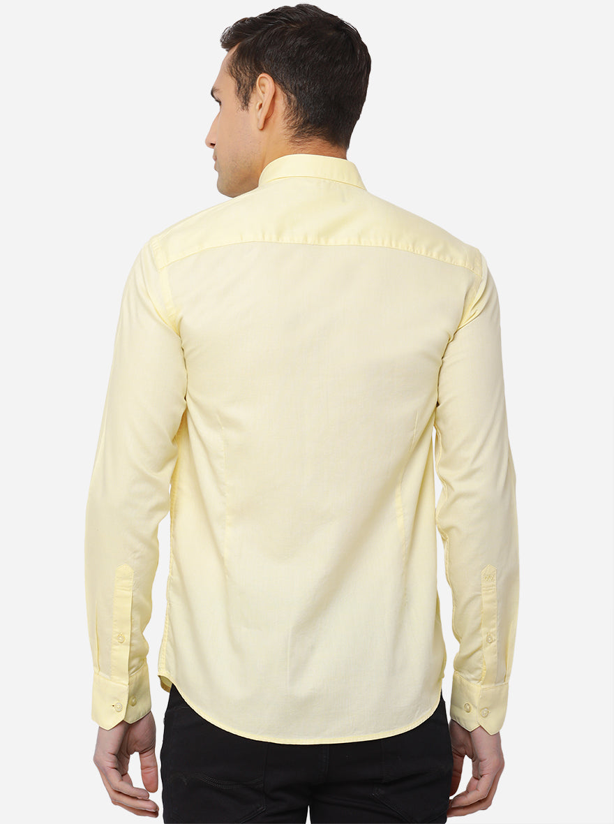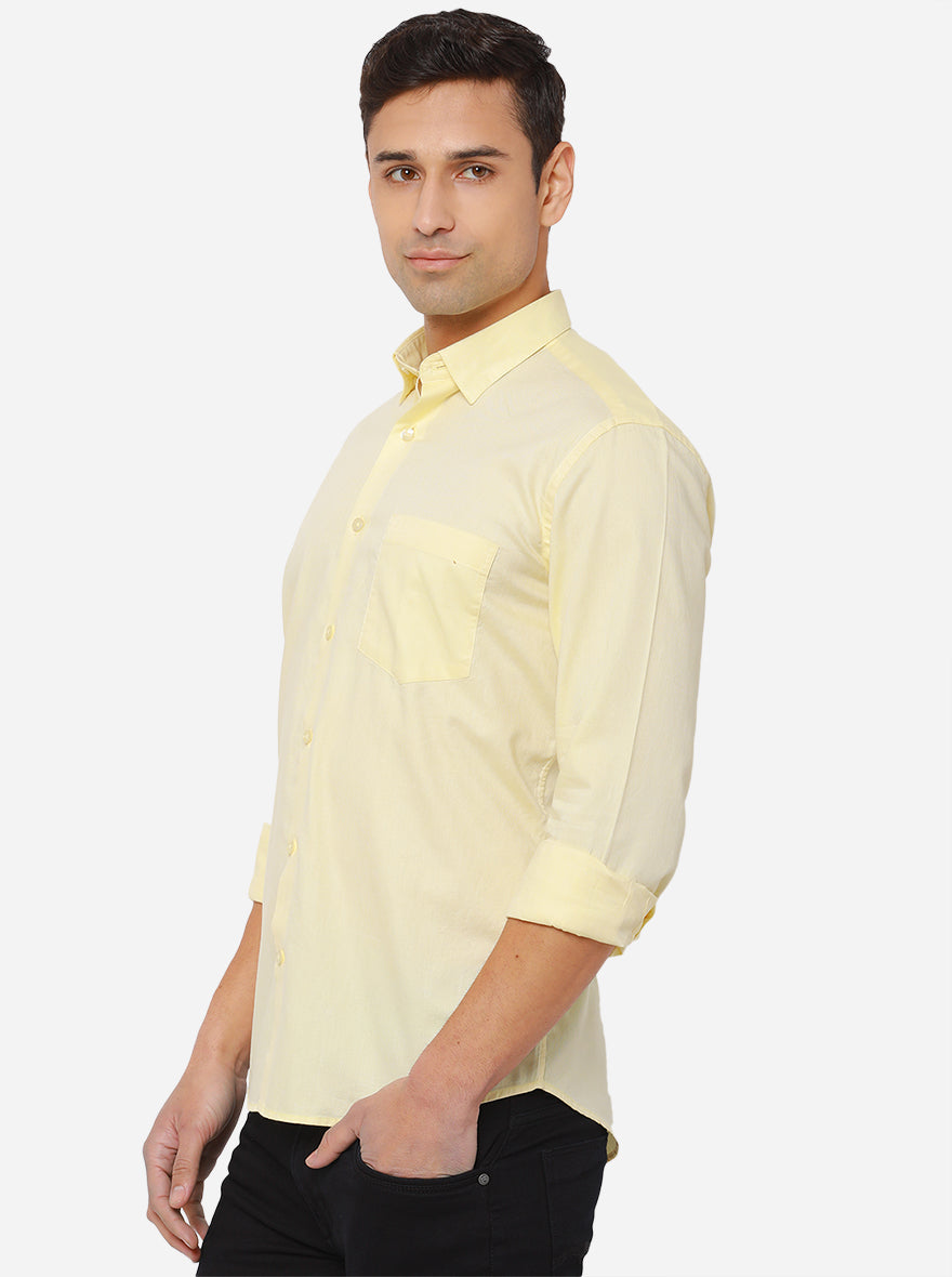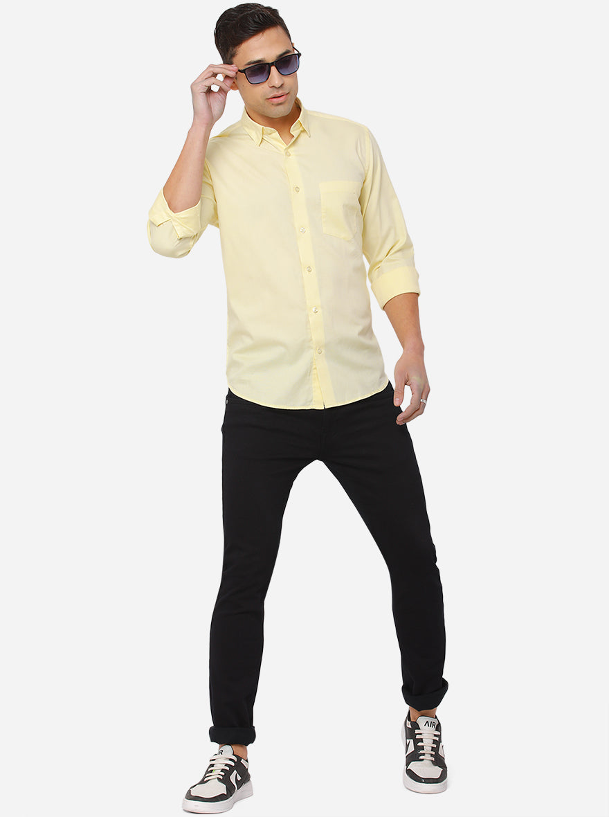 Cream Solid Slim Fit Casual Shirt | JadeBlue