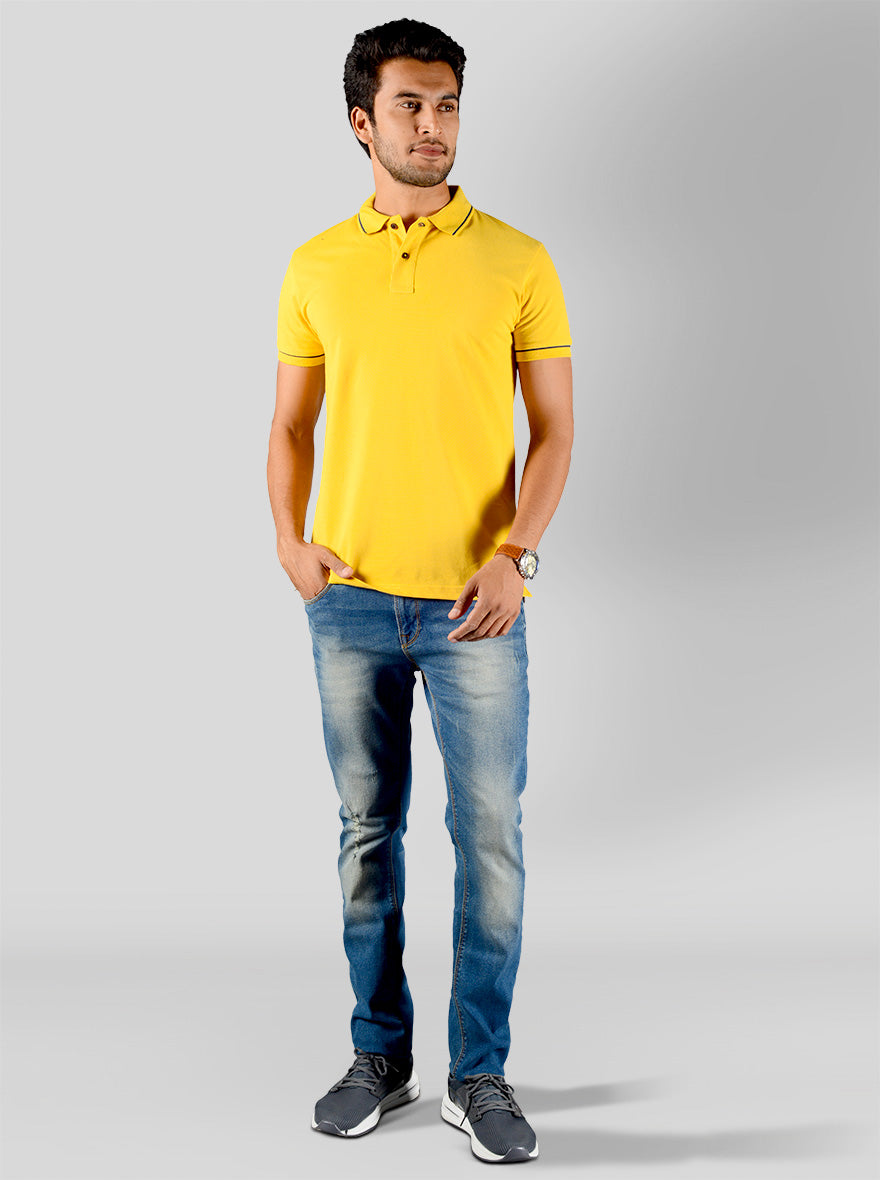 Daffodil Yellow Solid Slim Fit Polo T-shirt | Greenfibre