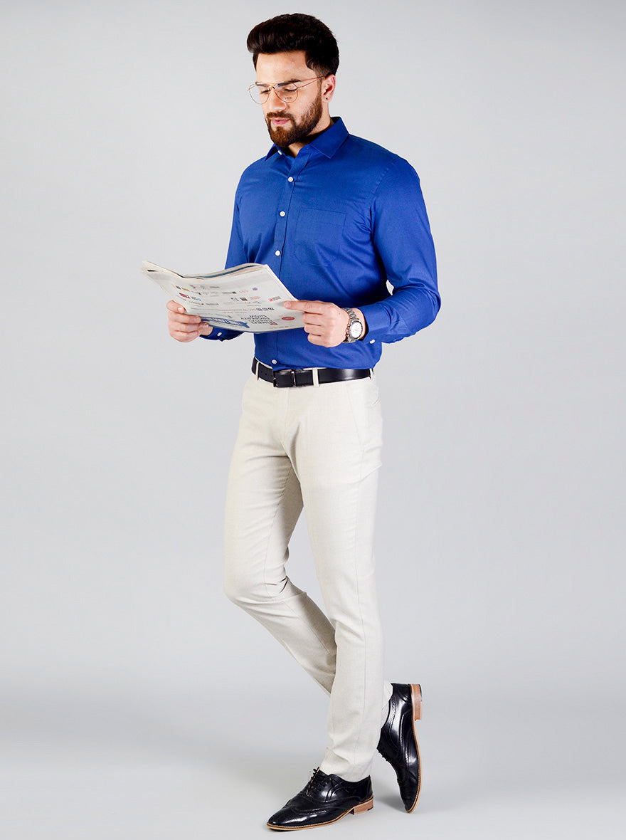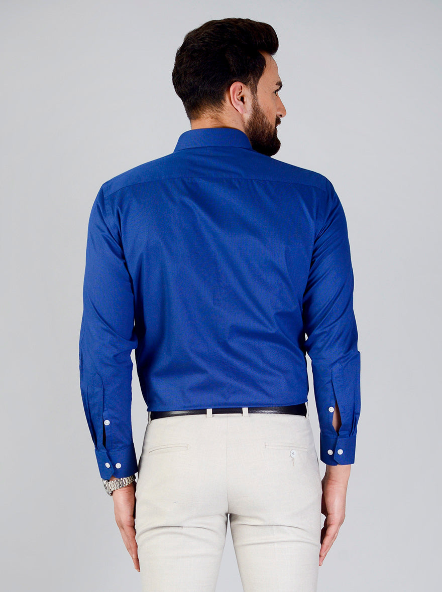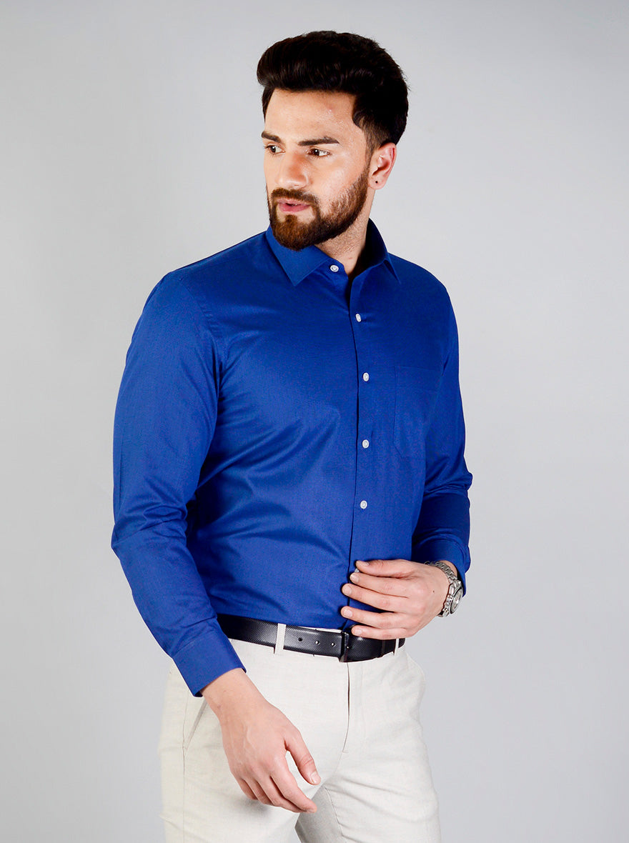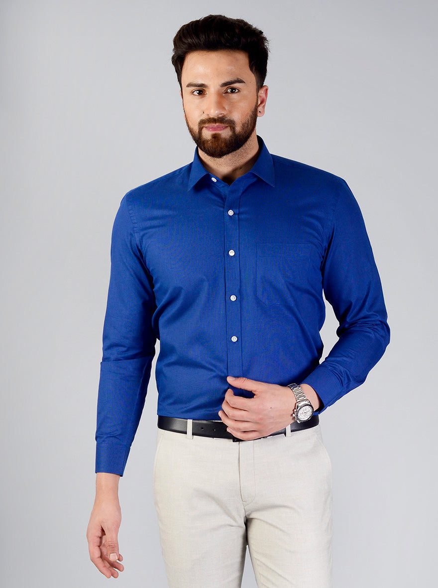 Details: This royal blue formal shirt from the house of Greenfibre will let you achieve a smart yet comfy look. Tailored to perfection from cotton blend fabric, this regular fit formal shirt features chest pocket, shirt collar and front buttons for comfy closure.
