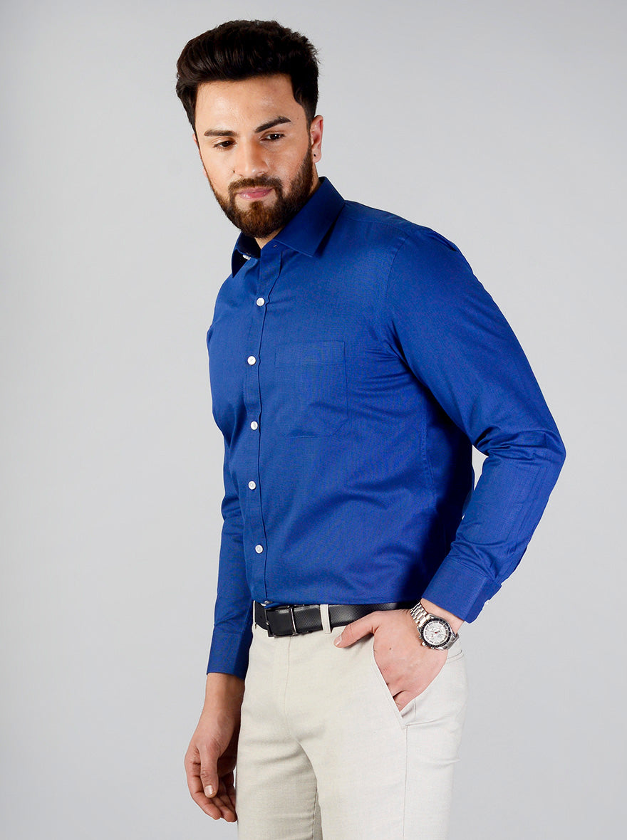 Dark Blue Self Design Regular Fit Formal Shirt | Greenfibre