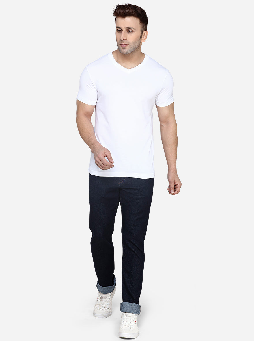 Details: Upgrade your jeans collection by adding this comfy pair of Dark Blue jeans to it. Made to perfection, this Straight Fit jeans is tailored with all the essential features.Flaunt different looks each day by donning this pair of Dark Blue jeans. It has been stitched using high quality of Cotton Stretch fabric, which offers great comfort. The wide range of basic features lend a meaningful touch to this pair. This trendy pair of Solid Straight Fit Men's jeans is a must-have piece. This pair of Cotton Stretch men's jeans is stitched by incorporating basic features like belt loops, zip fly, single button closure & 4 pockets.