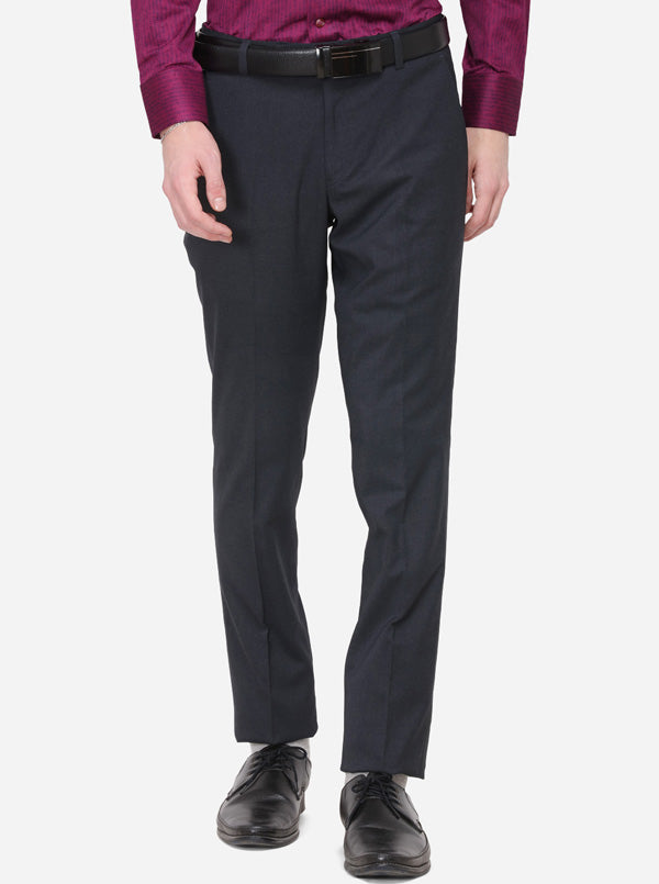 Dark Blue Solid Super Slim Fit Formal Trouser | Greenfibre