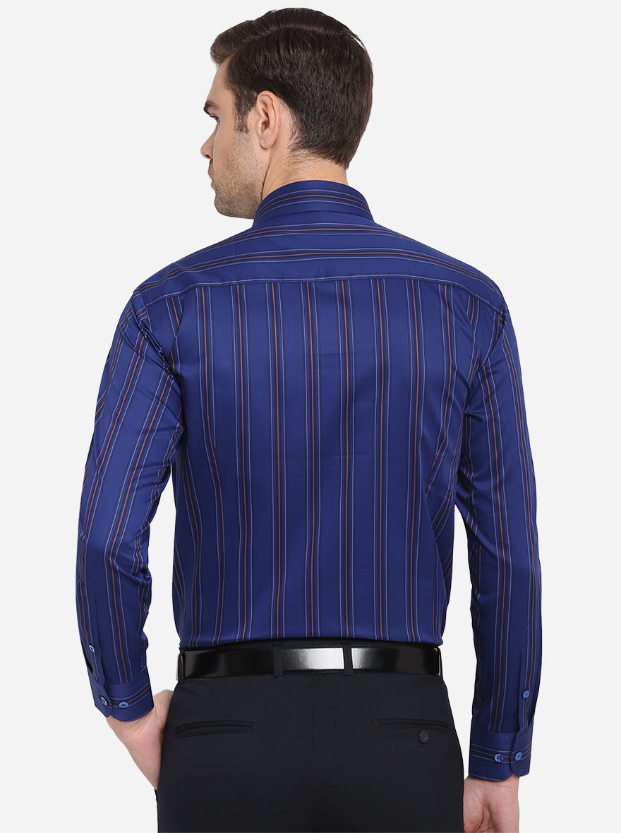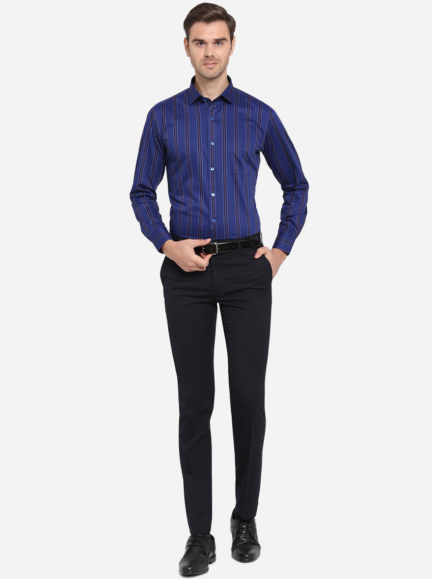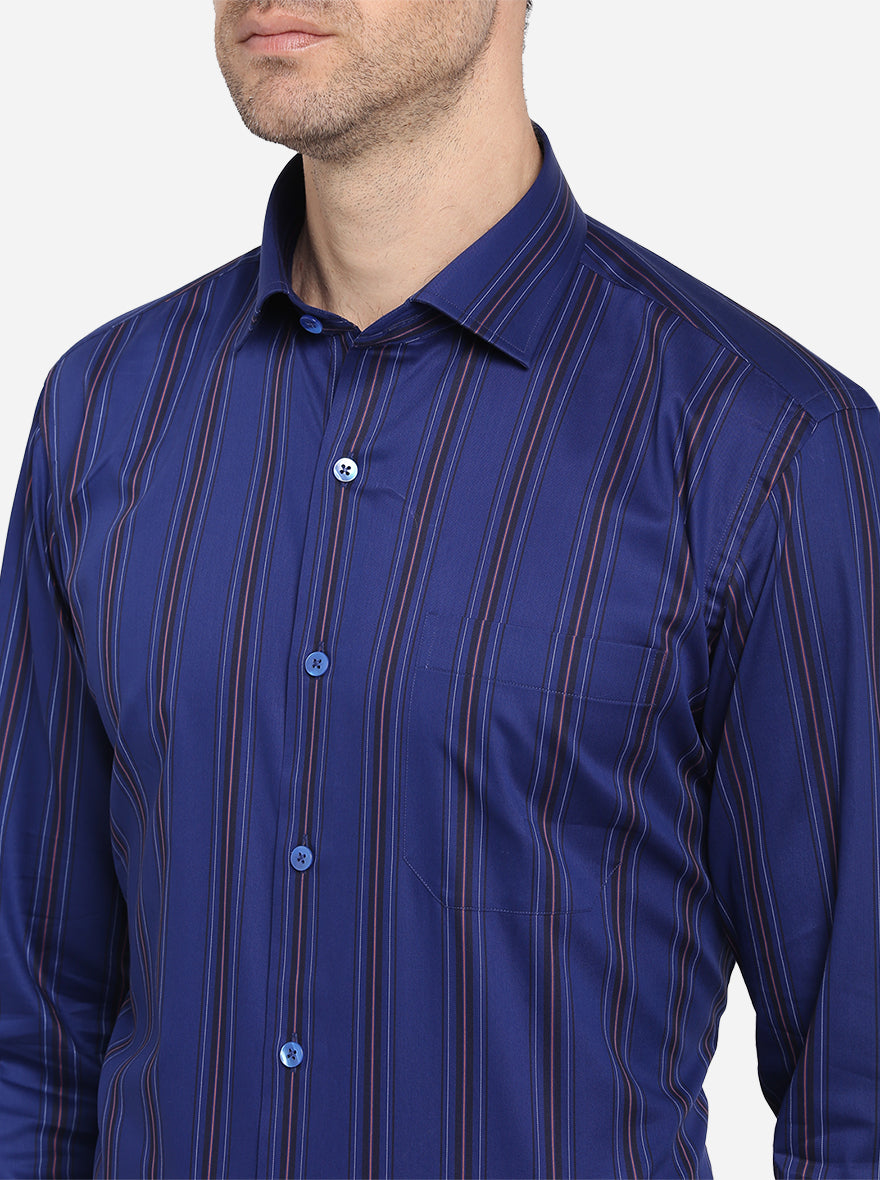 Dark Blue Striped Slim Fit Formal Shirt | Metal