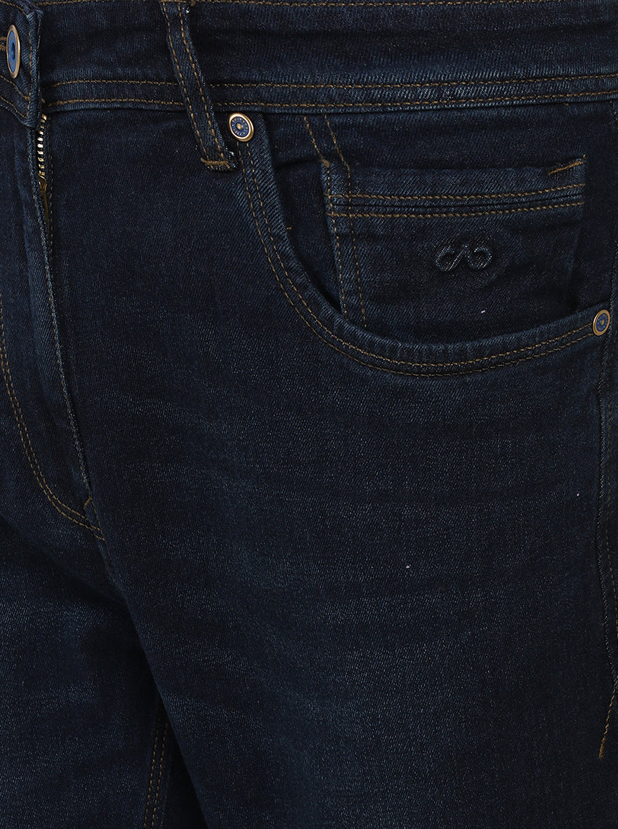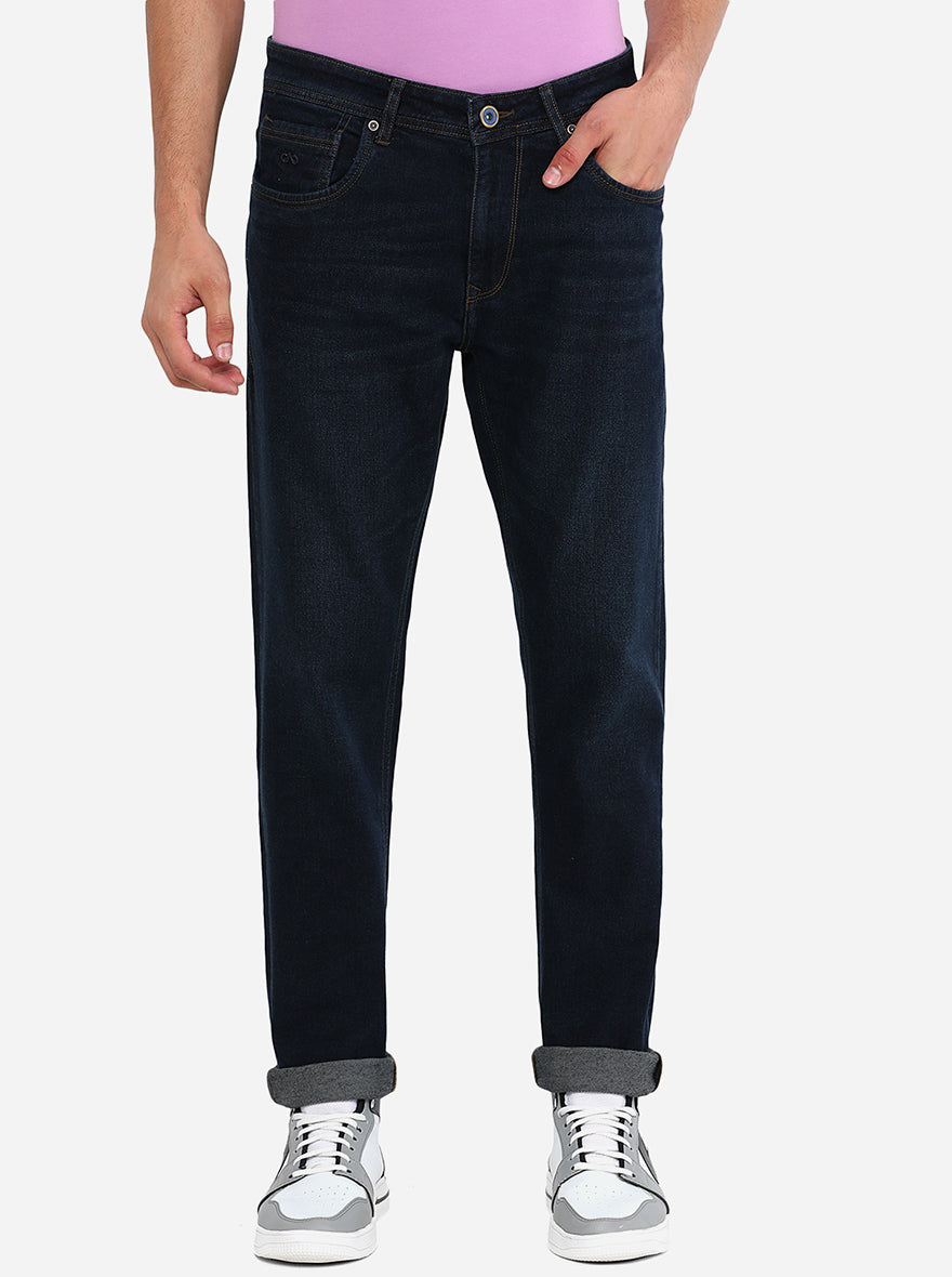Details: Get into the casual mood in this JadeBlue Men's Dark Blue Jeans. Made out of Cotton Stretch fabric ensuring comfort, breathability, and excellent stretchability all day. Offers a Mid Rise waist with a Straight fit and a flat front for a sleek look that has been elevated with a Washed pattern. Features five pockets, zipper, and button for closure. Match it with a T-shirt of your choice and a pair of canvas for an iconic look. Perfect for semi-formal looks.