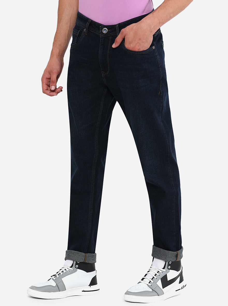 Dark Blue Washed Straight Fit Jeans | JadeBlue