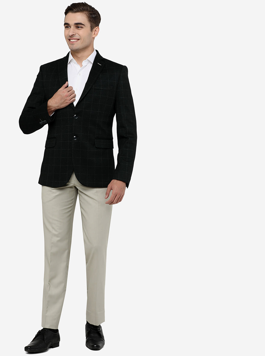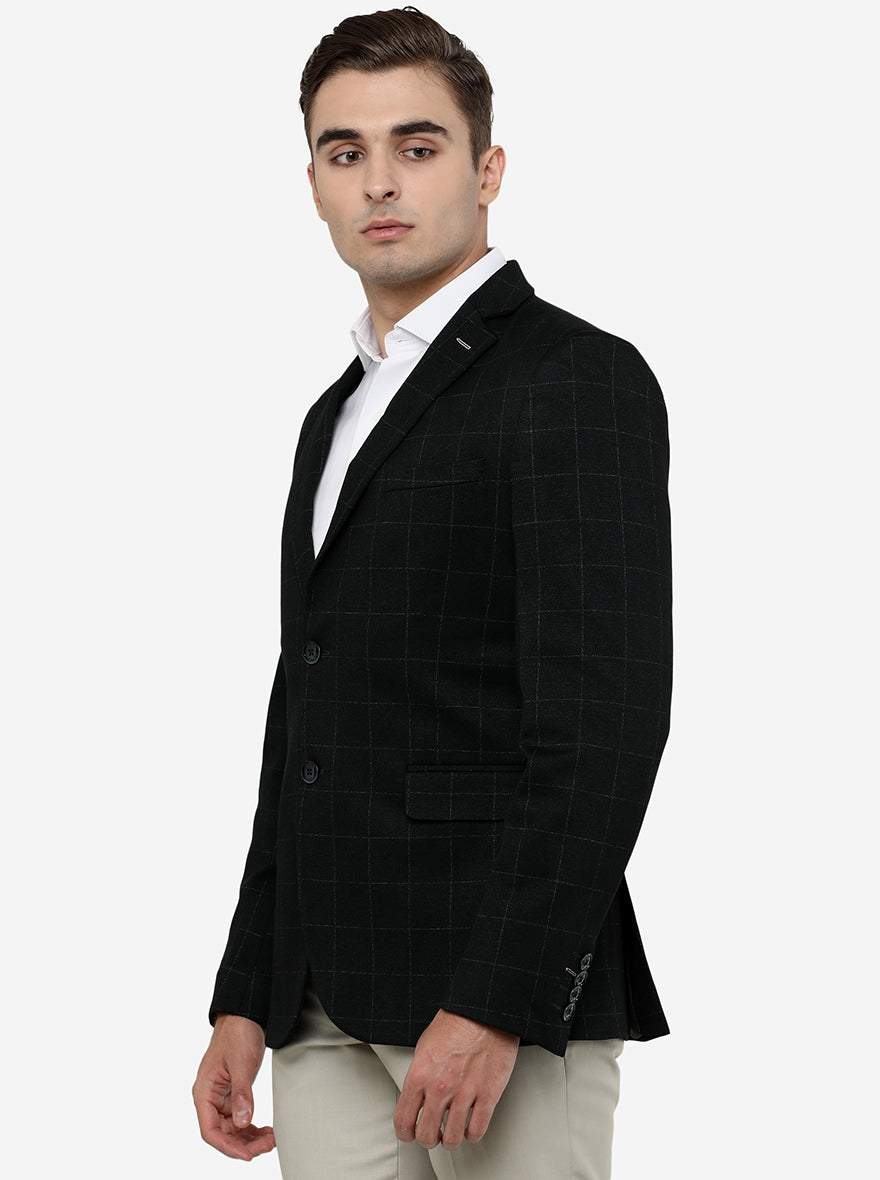 Details: Grab the attention of crowd when you attend cocktail hour, reception or any evening party in this checks dark green blazer designed by JB Studio. This regular fit blazer is made from terry wool fabric, which promises great fit and mobility to you all through the day. This blazer is stitched to perfection by including features like chest pocket, full sleeves, 2 bottom flap pockets, 2 buttons closure and notch lapel, which gives it a meaningful touch. Pair it over a crisp white shirt and beige trousers for a dapper look.