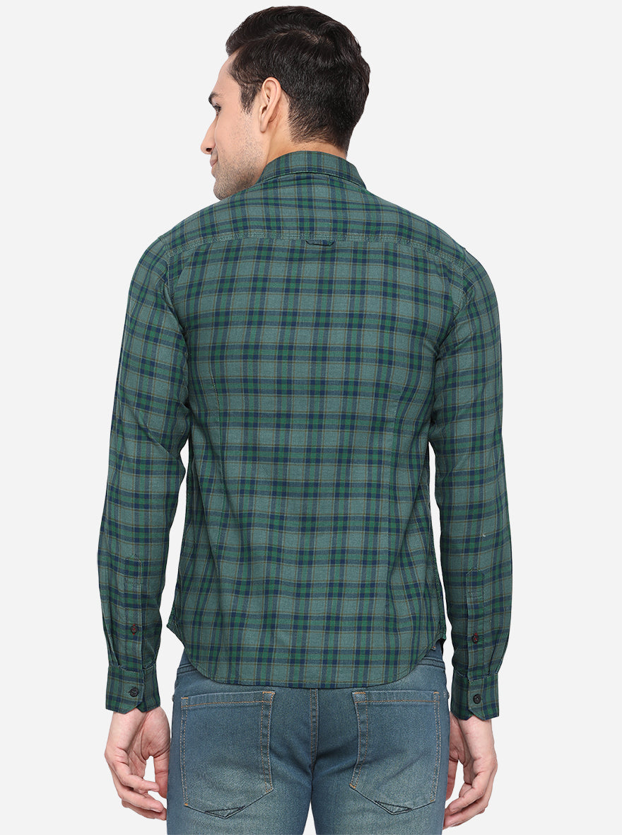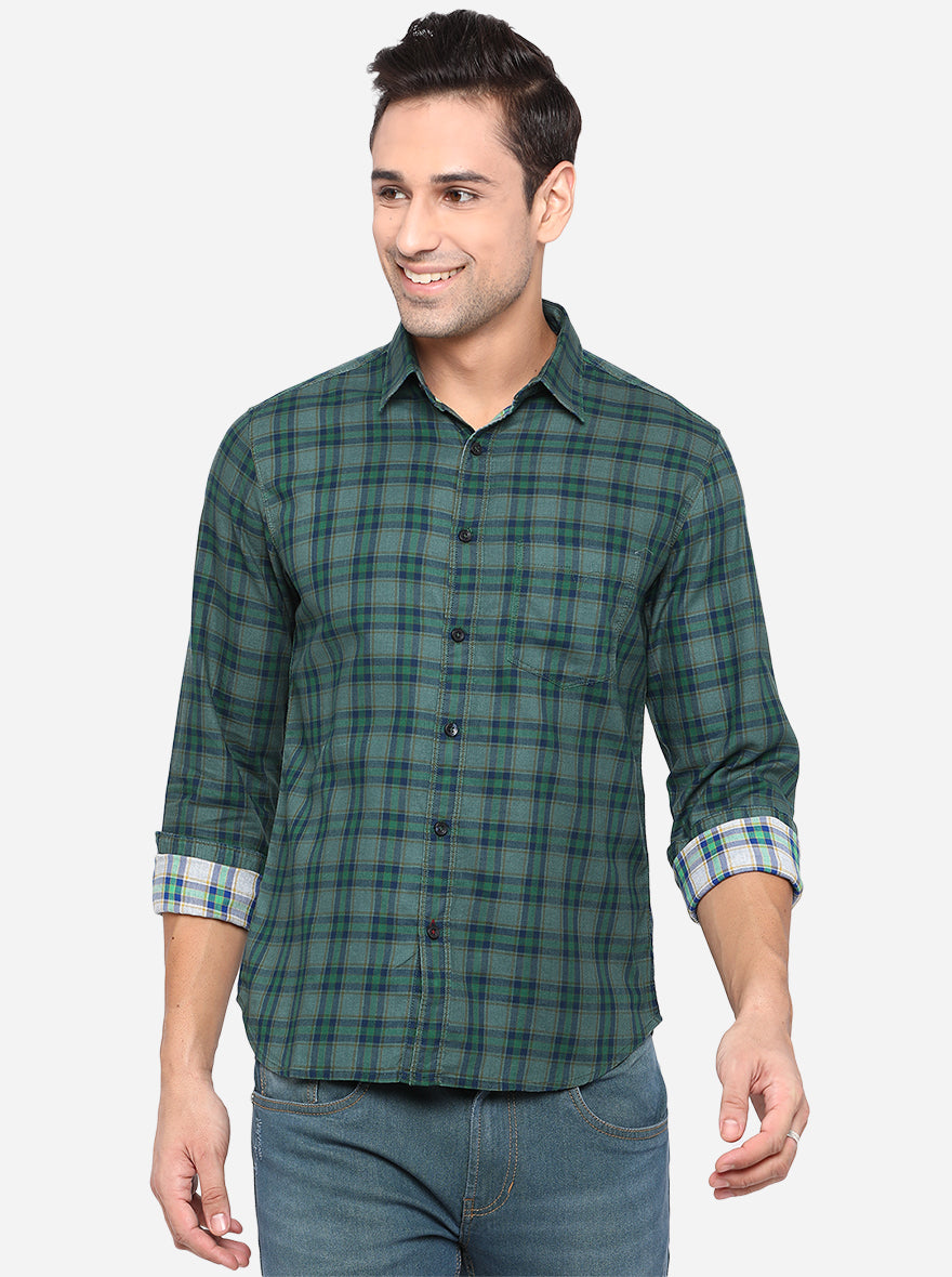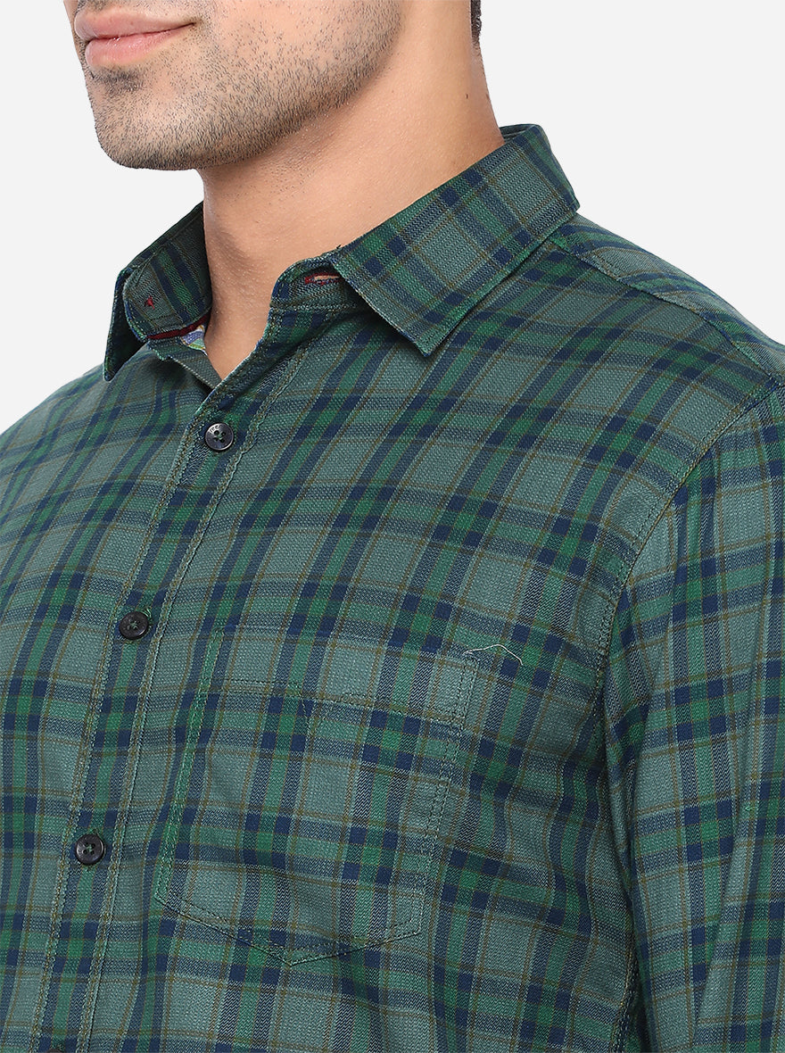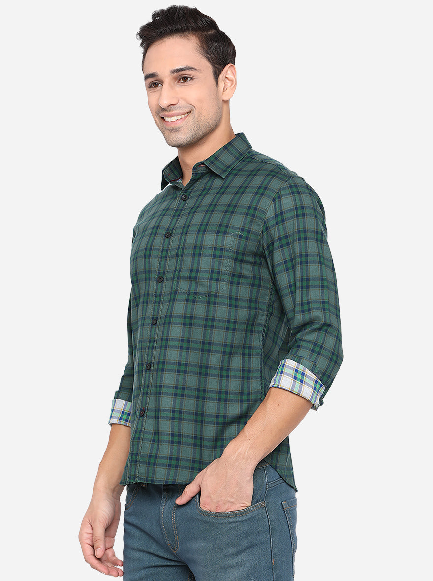 Dark Green Checked Slim Fit Semi Casual Shirt | Greenfibre