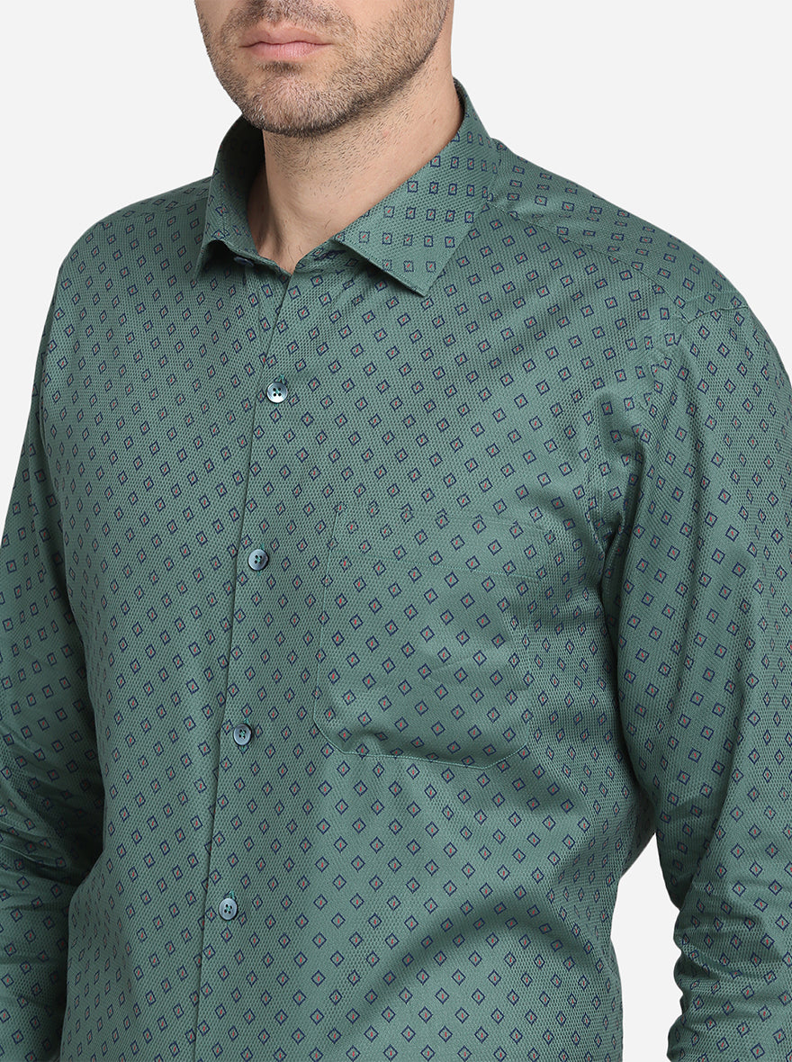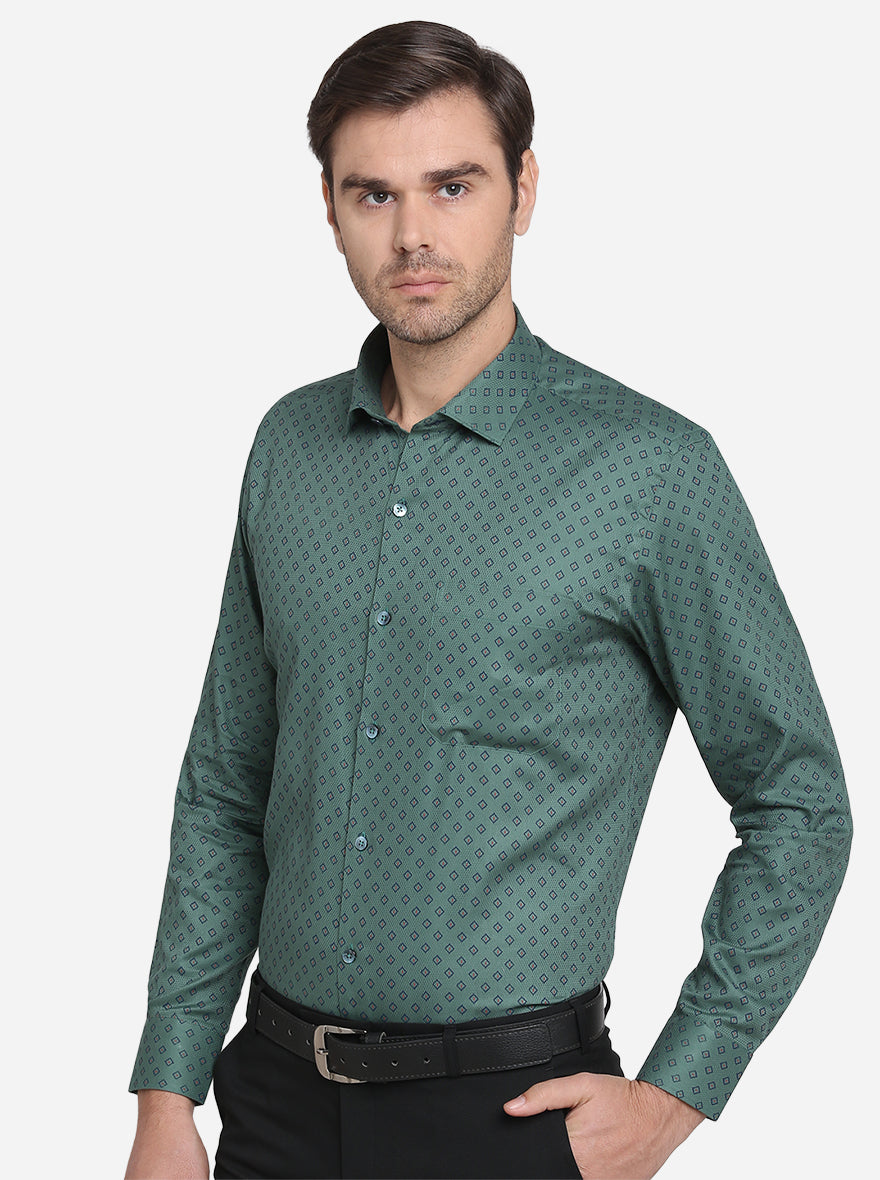 Dark Green Printed Slim Fit Formal Shirt | Metal