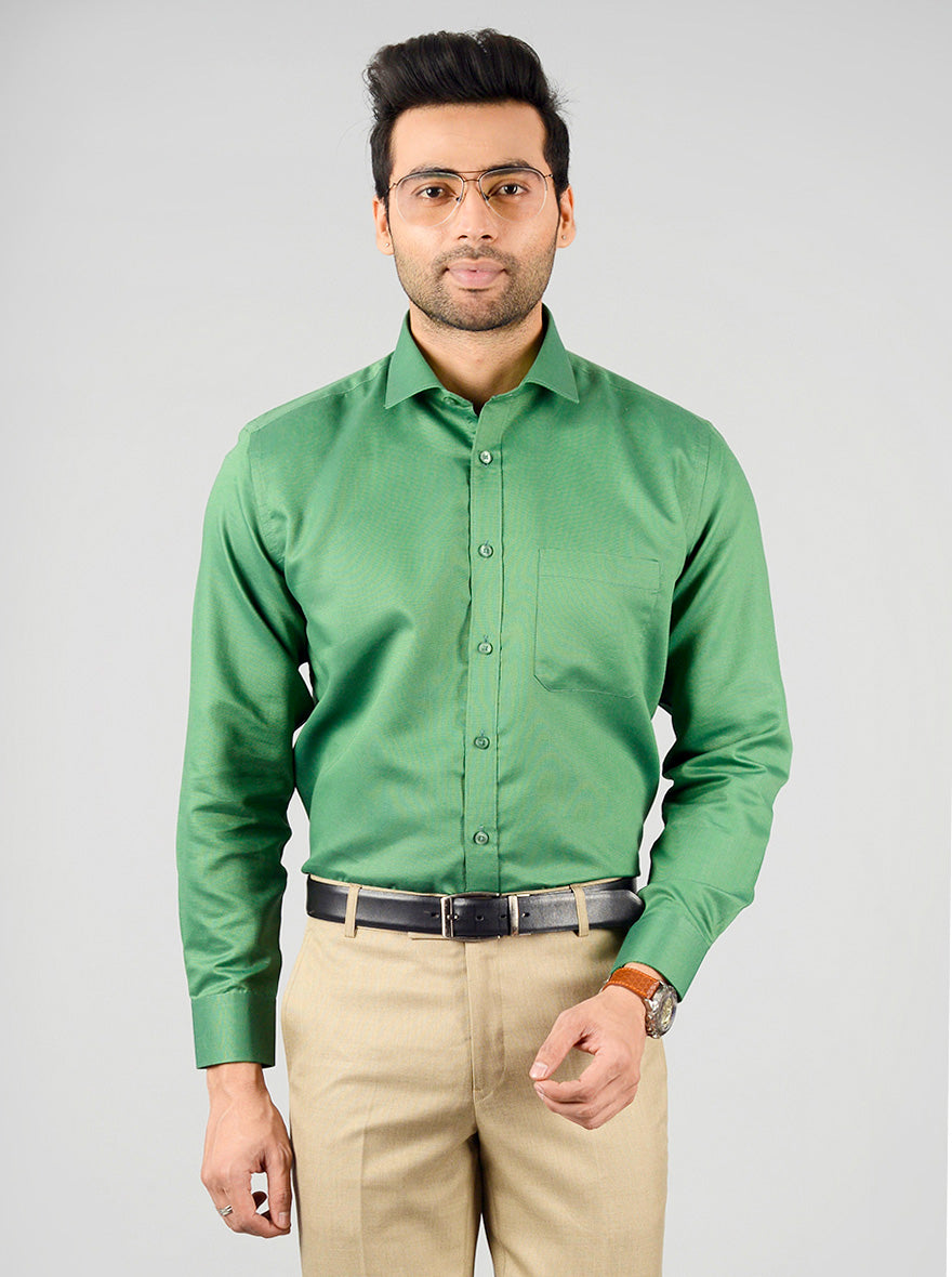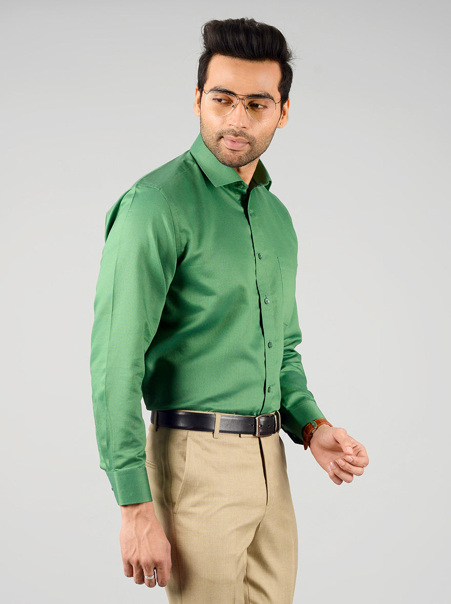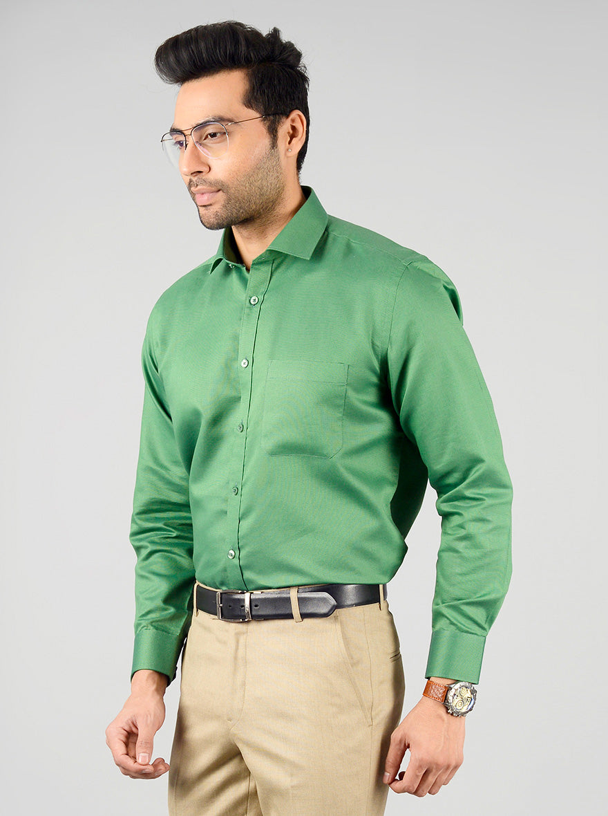 Dark Green Solid Regular Fit Formal Shirt | Greenfibre