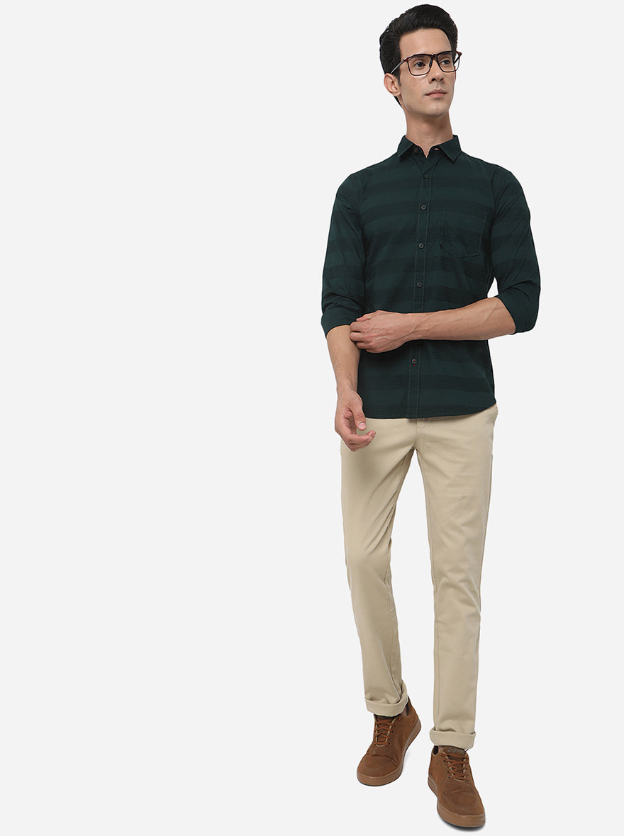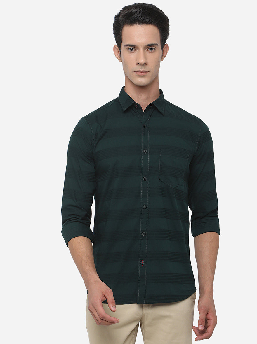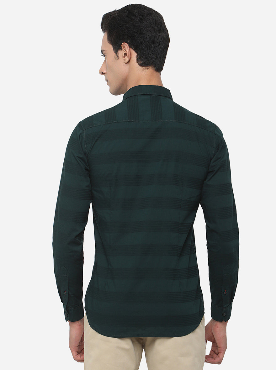 Dark Green Striped Slim Fit Semi Casual Shirt | JadeBlue
