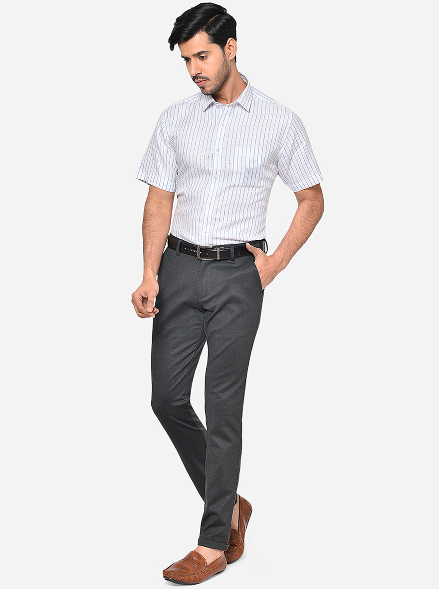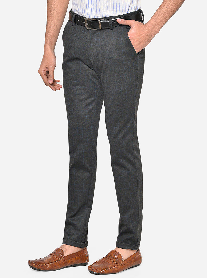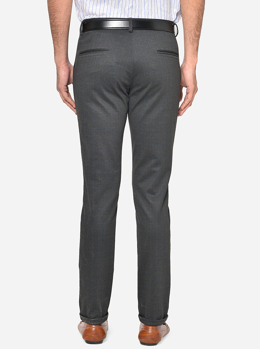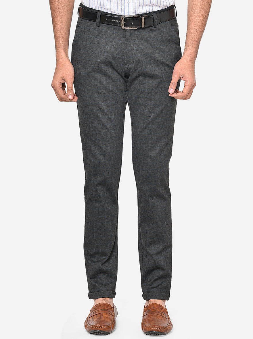 Dark Grey Checked Venice Fit Casual Trouser | JadeBlue