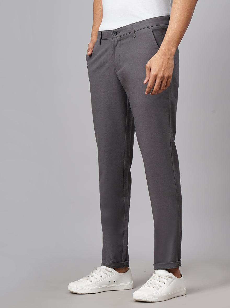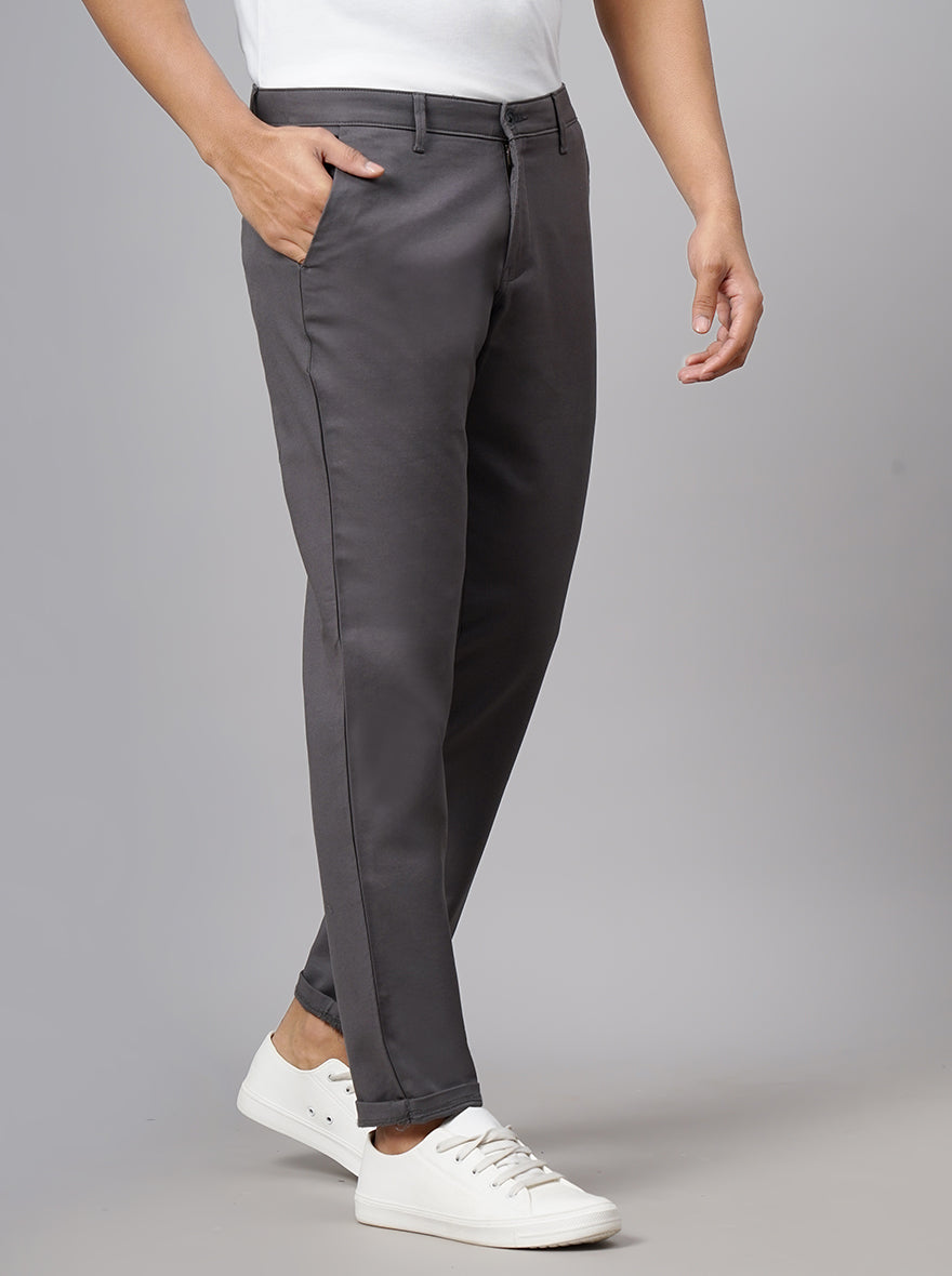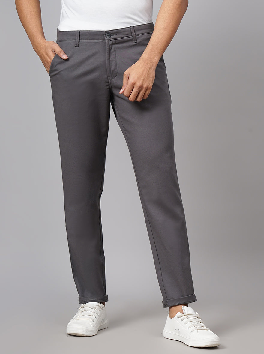 Dark Grey Dobby Neo Fit Casual Trouser | Greenfibre
