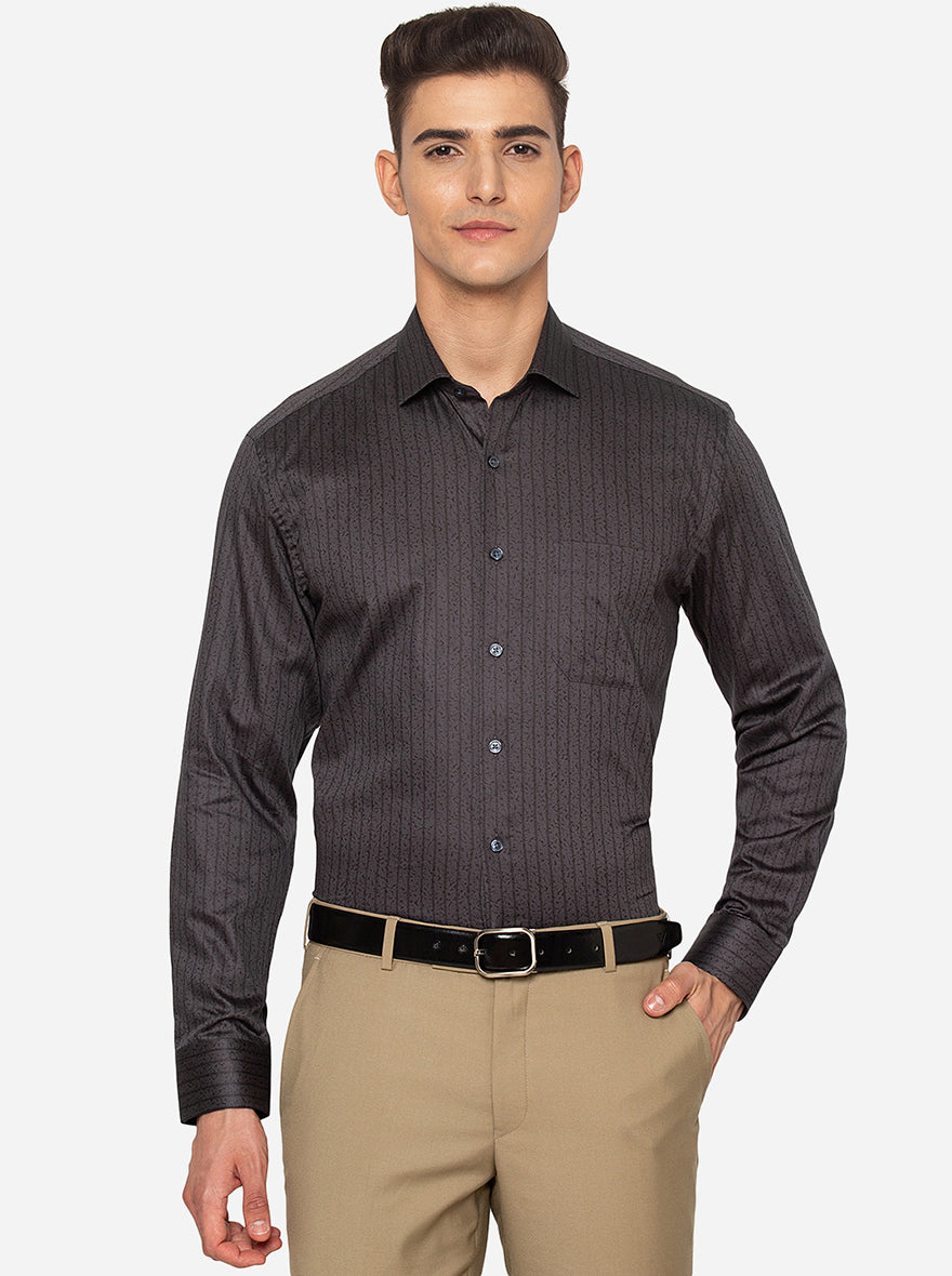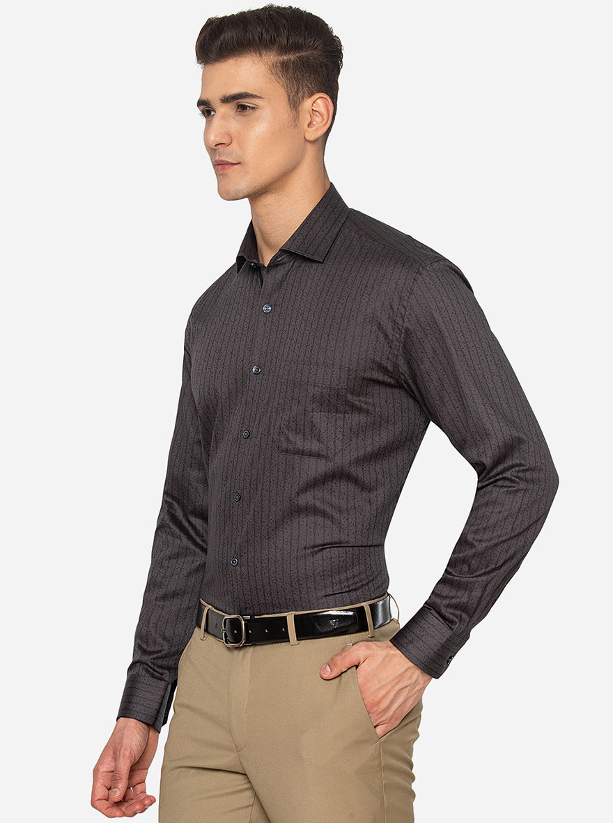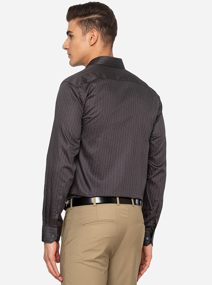 Dark Grey Printed Regular Fit Formal Shirt | JadeBlue
