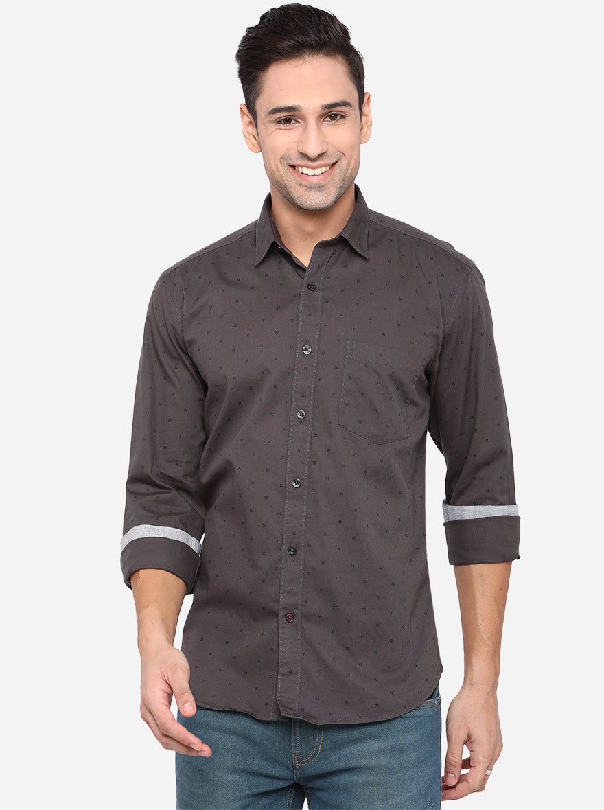 Details: Steal all the attention wearing this Dark-Grey Shirt from the latest collection of JadeBlue. It features a shirt collar, full-sleeves and offers a slim-fit. It comes with a pocket on front. It is adorned with a printed pattern all over, making up for a trendy choice. Perfect for casual wear or weekend wear. Crafted with pure cotton, it promises a soft touch against the skin and a comfort like no other. Team it with a well-fitted blue denim and white sneakers to achieve the desired look.