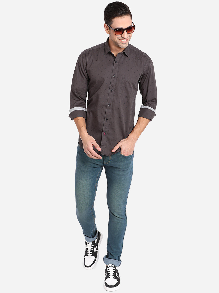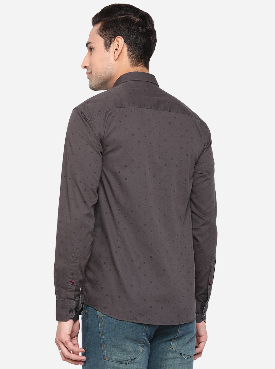 Dark Grey Printed Slim Fit Casual Shirt | JadeBlue