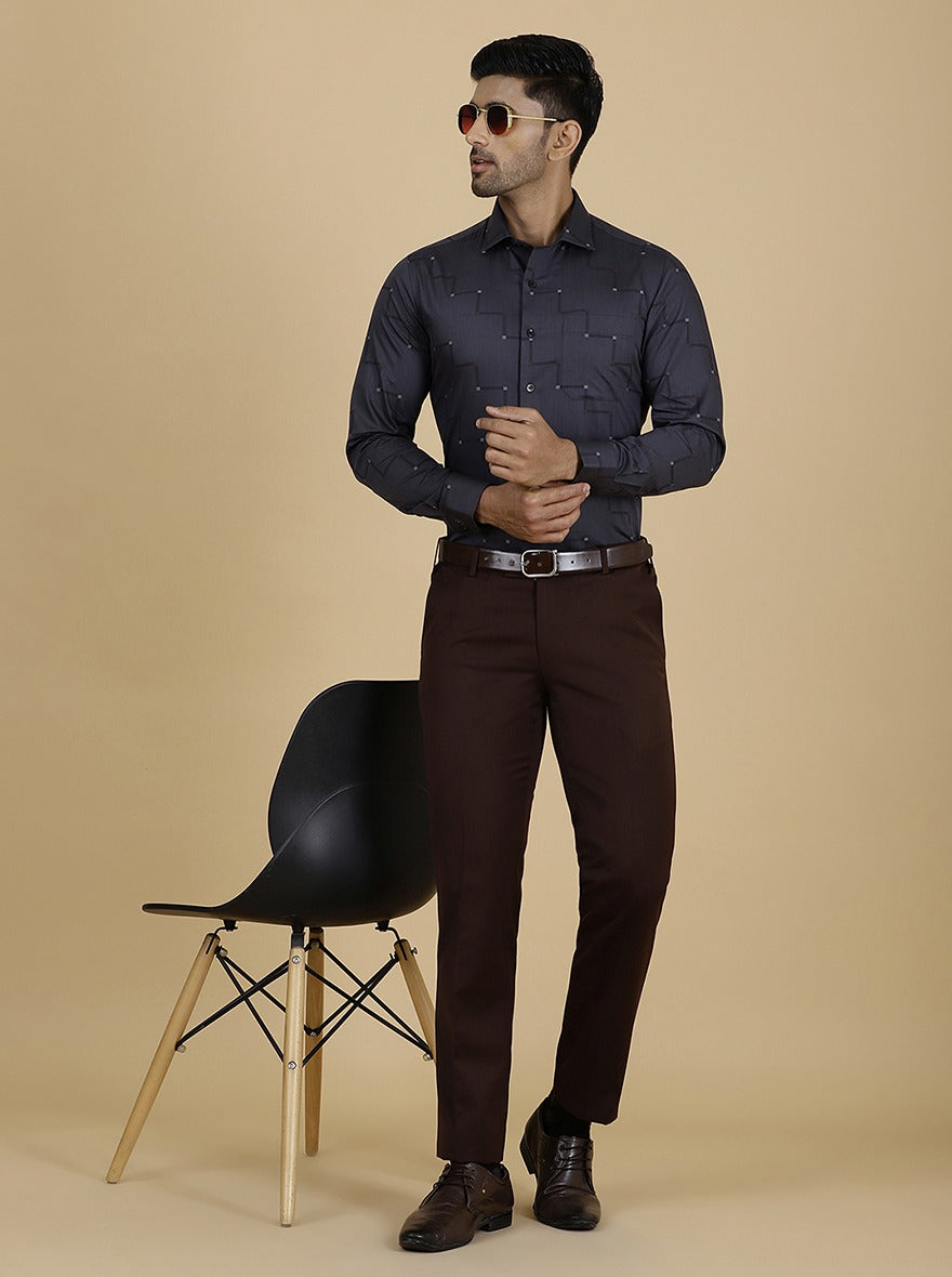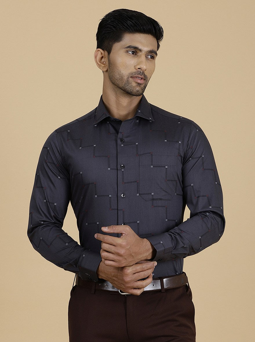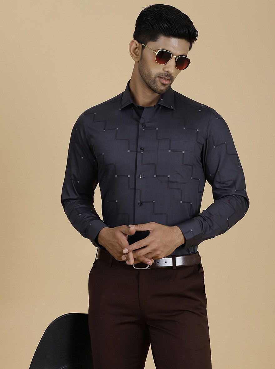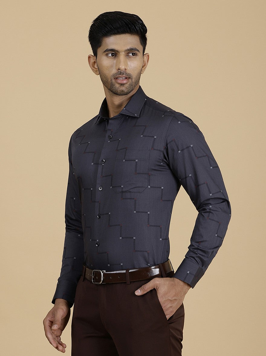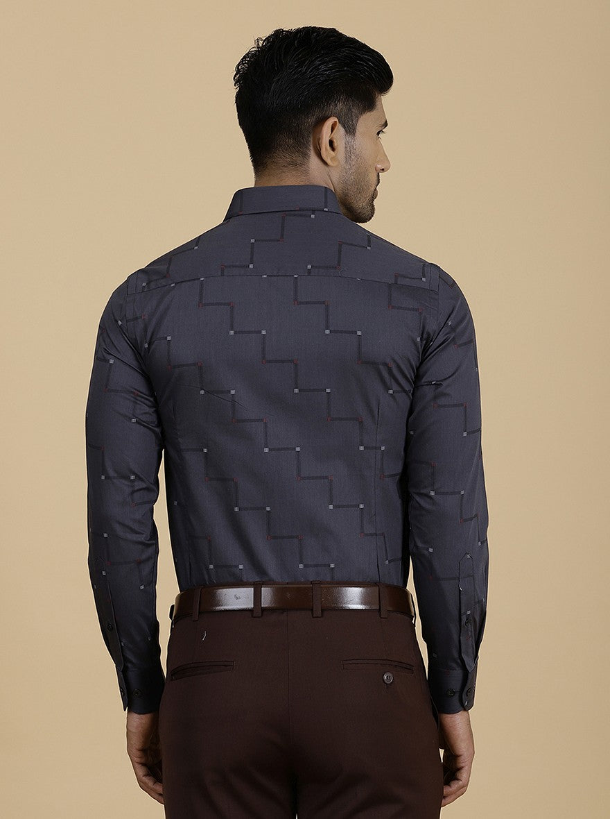 Dark Grey Printed Slim Fit Formal Shirt | Metal