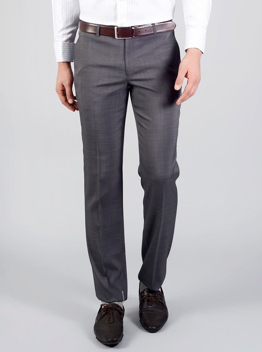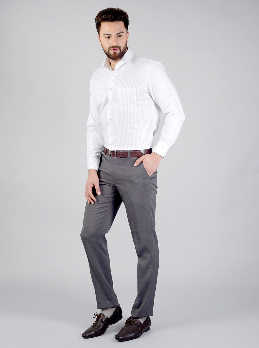 Dark Grey Self Design Regular Fit Formal Trouser | JadeBlue