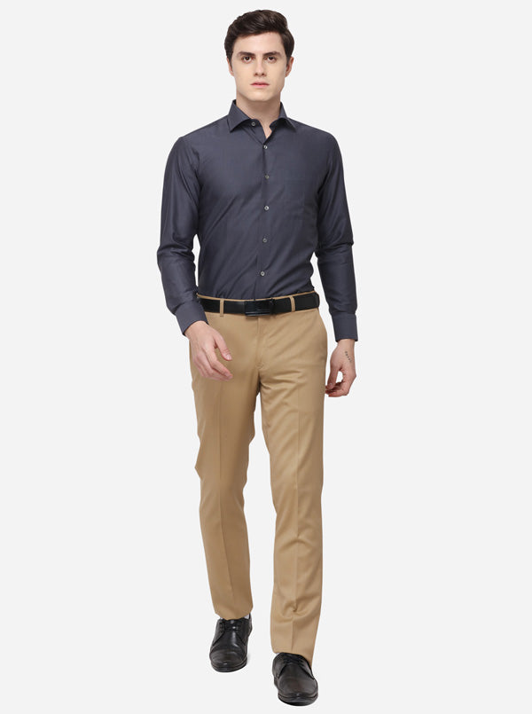 Dark Grey Solid Slim Fit Formal Shirt | JadeBlue