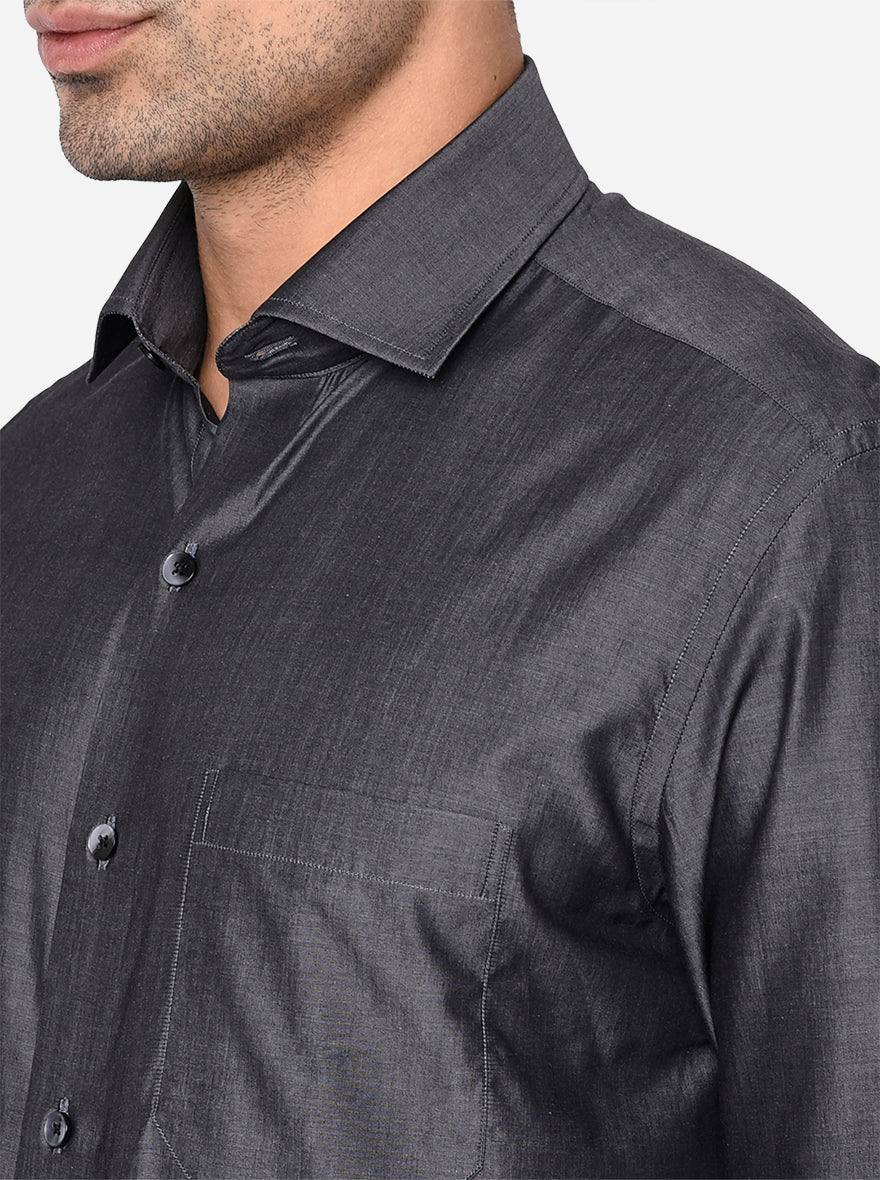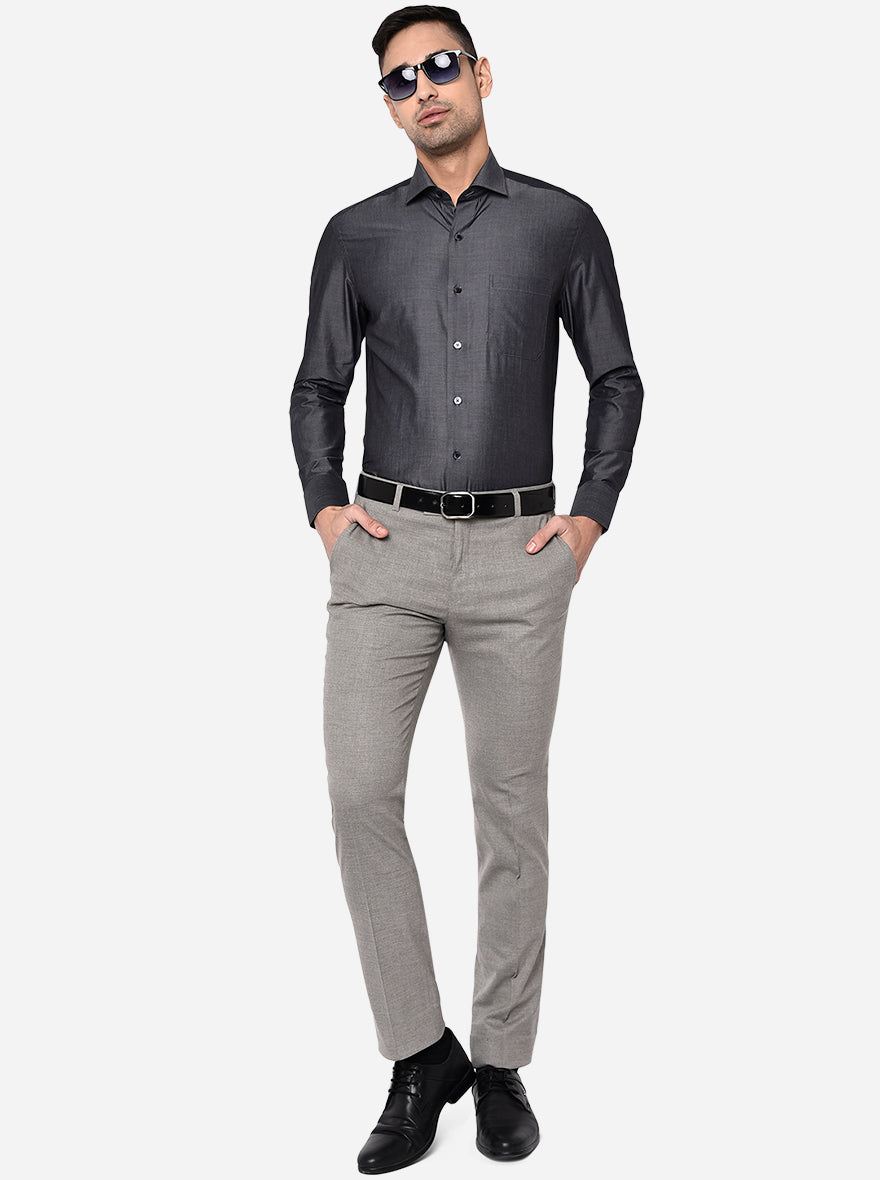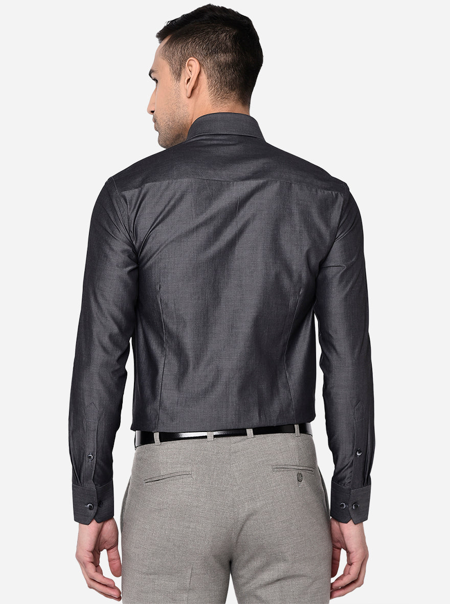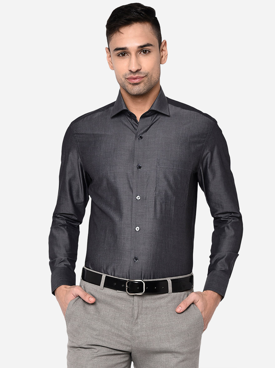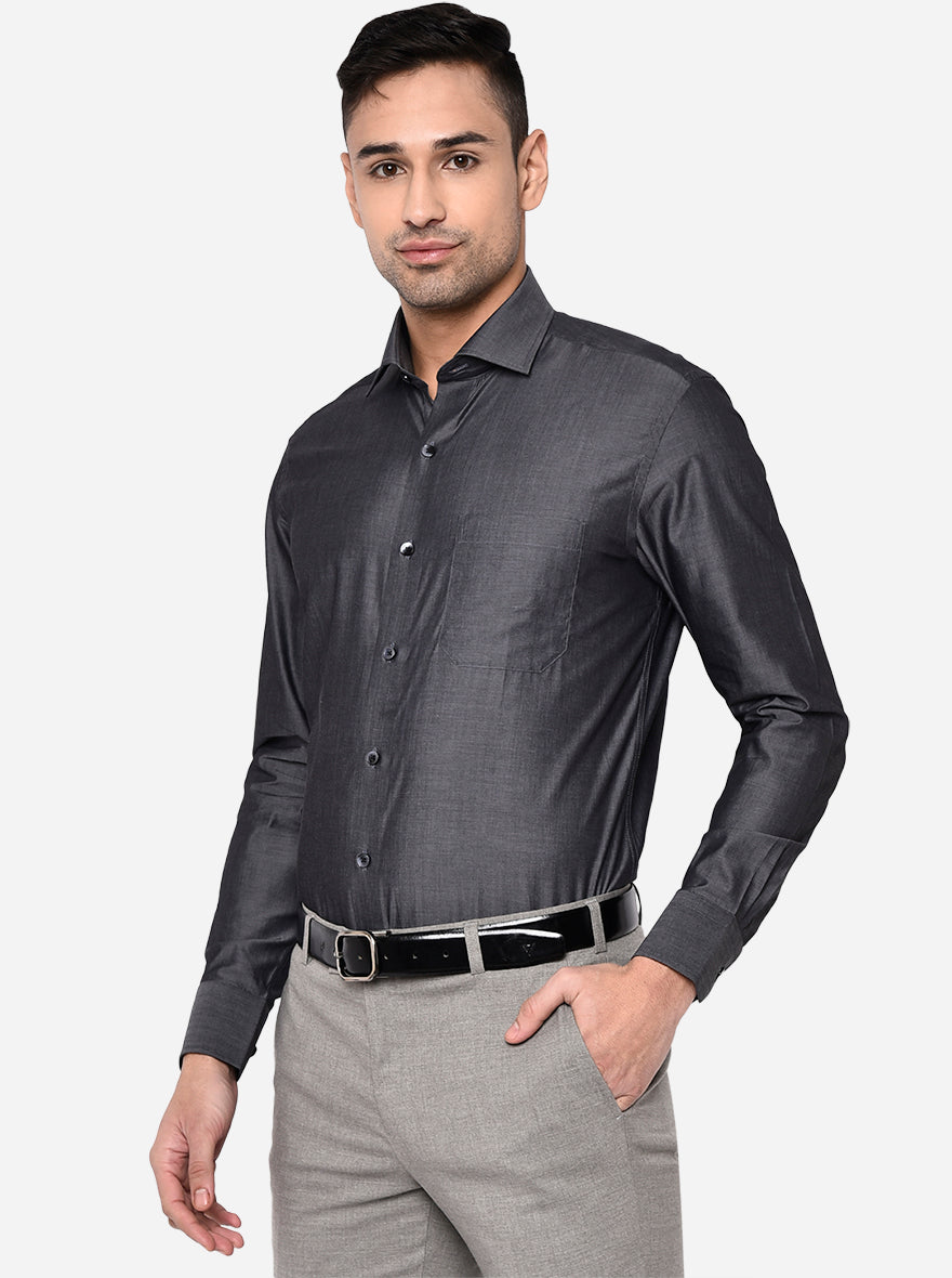 Dark Grey Solid Slim Fit Formal Shirt | Metal