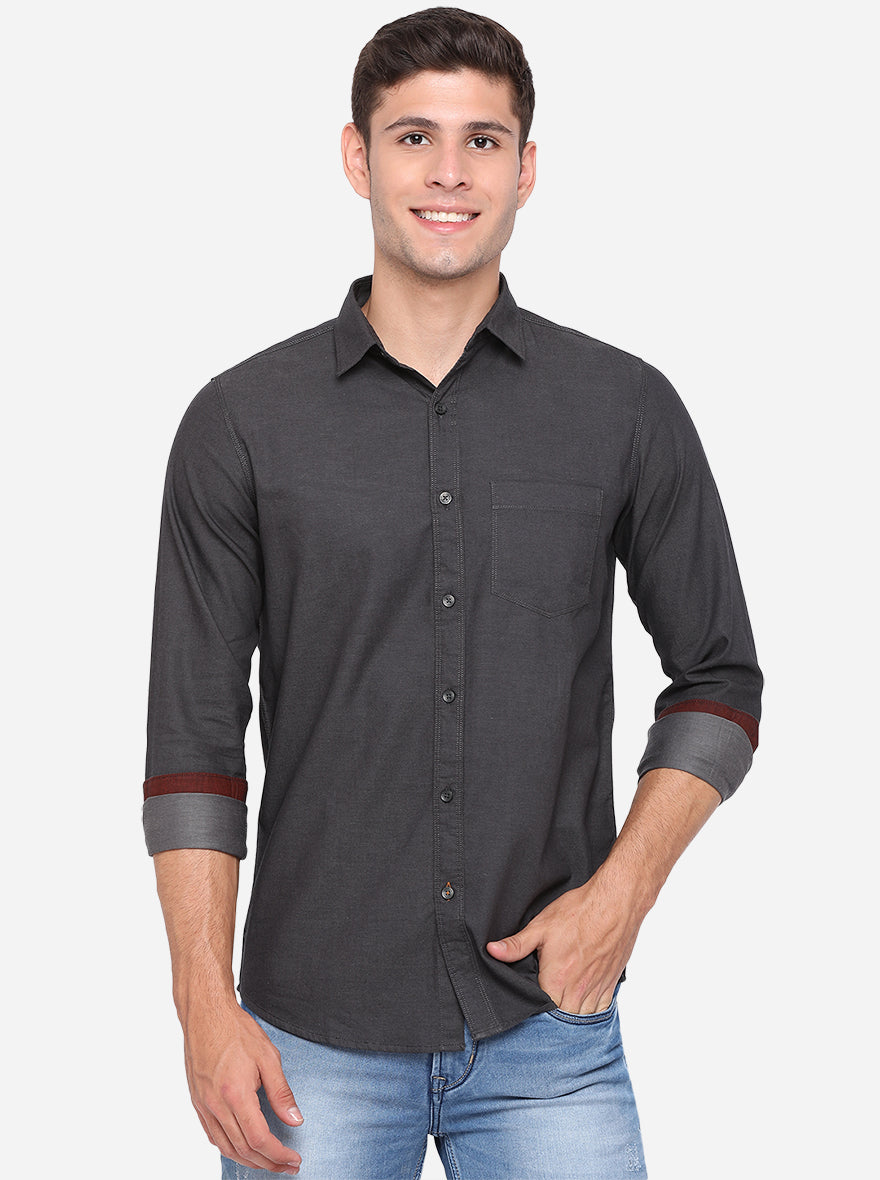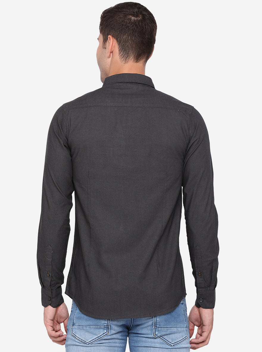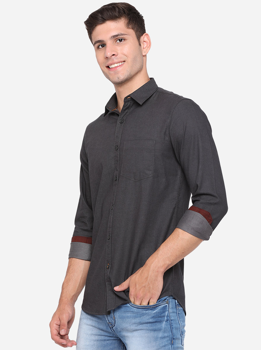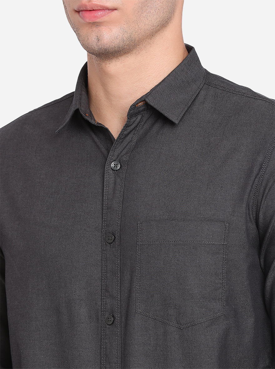 Dark Grey Solid Slim Fit Semi Casual Shirt | JadeBlue