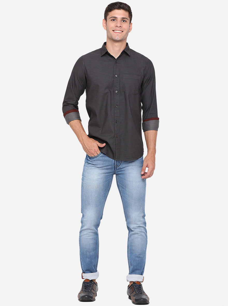 Details: Create a style statement by wearing this amazing Dark-Grey Shirt from the latest collection of JadeBlue Sport. It features a shirt collar, full-sleeves and offers a slim-fit. It is adorned with a solid pattern, making up for a timeless choice. Comes with a chest pocket on the front. Perfect for semi-casual wear or weekend wear. Crafted with pure cotton, it promises a soft touch against the skin and a comfort like no other. Team it with a well-fitted Black denim and white sneakers to achieve the desired look.