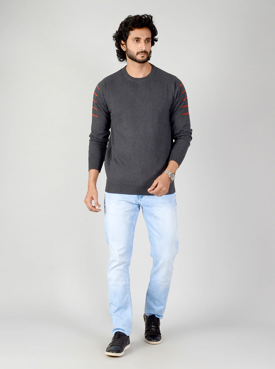 Details: Get a stylish look this season when you pour yourself into this solid dark grey T-shirt. This cotton slim fit T-shirt by JadeBlue features long sleeves and round neck. Must-have piece in your tees collection.