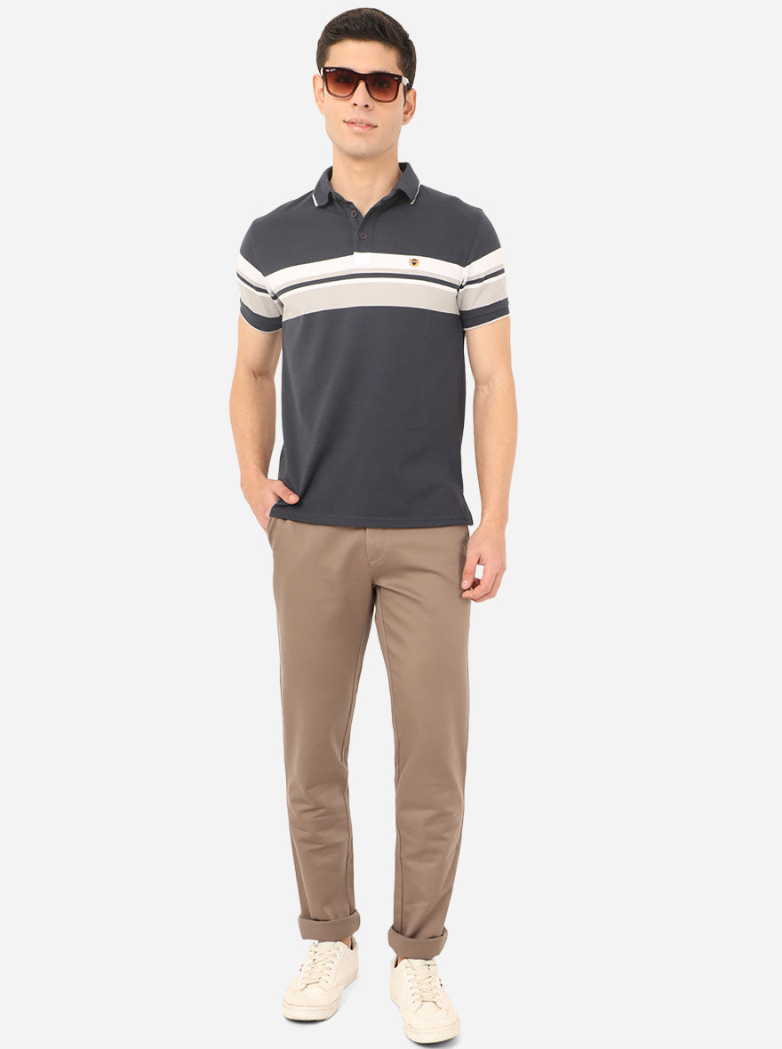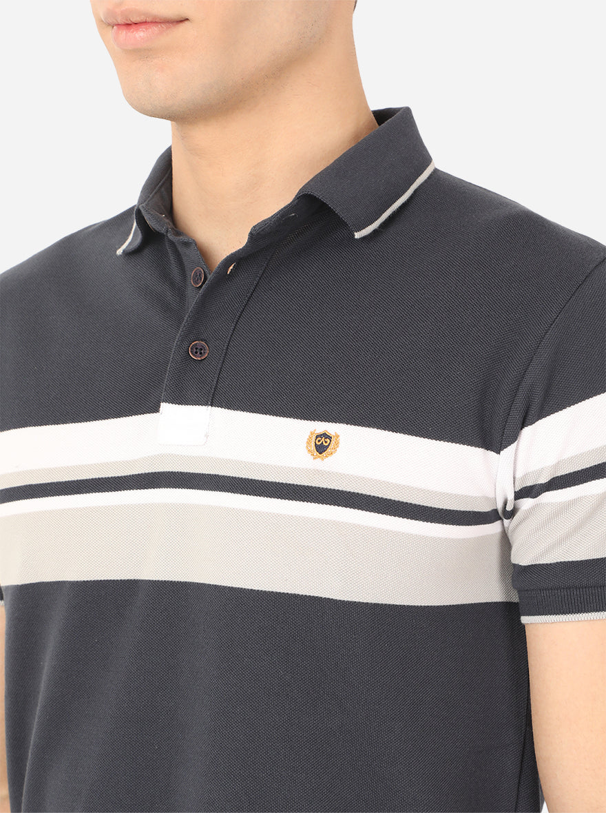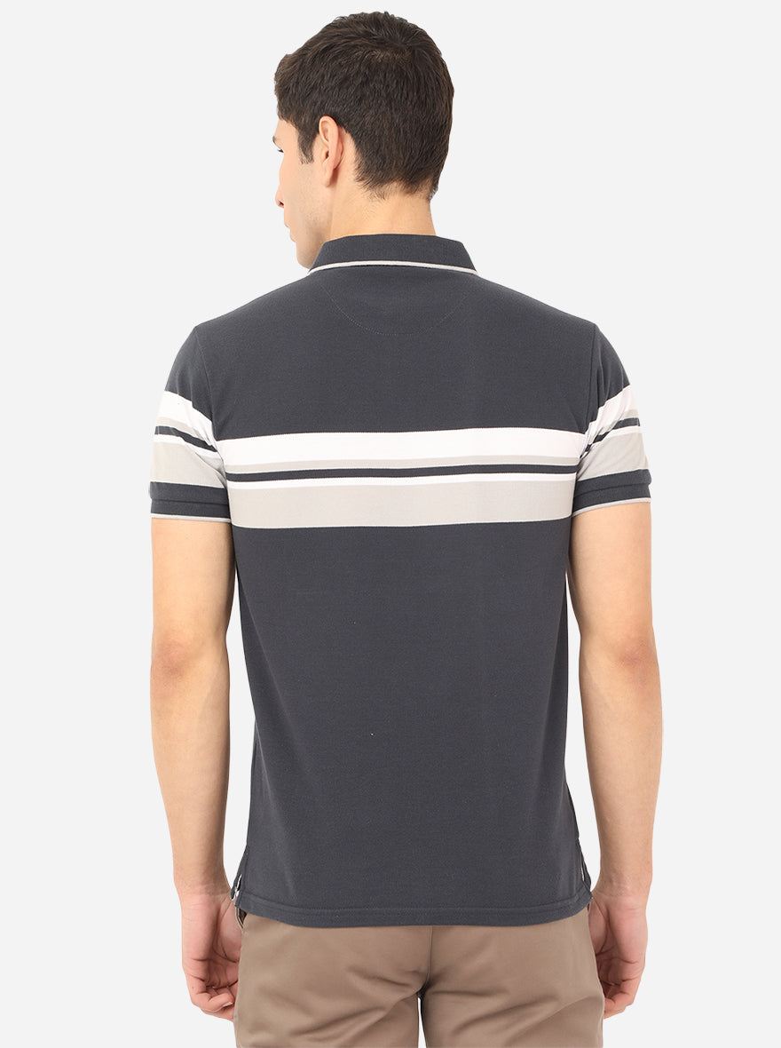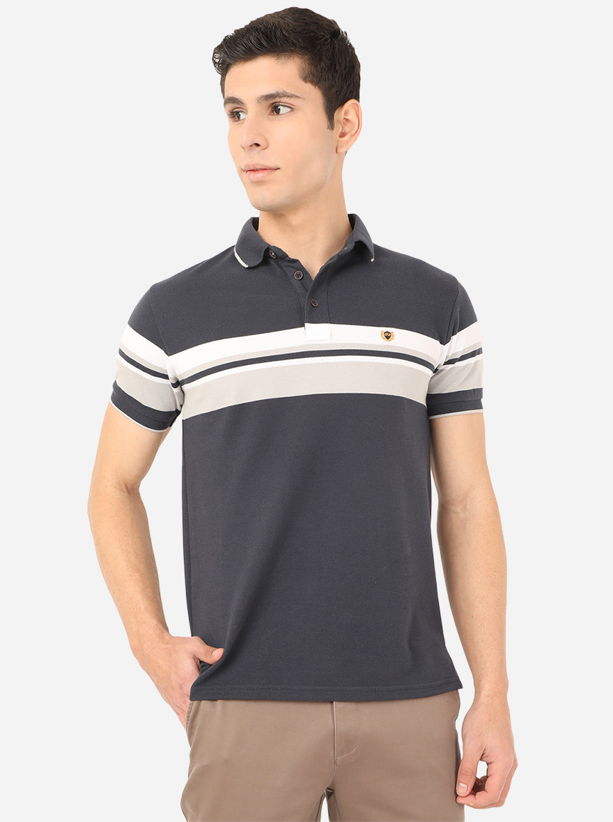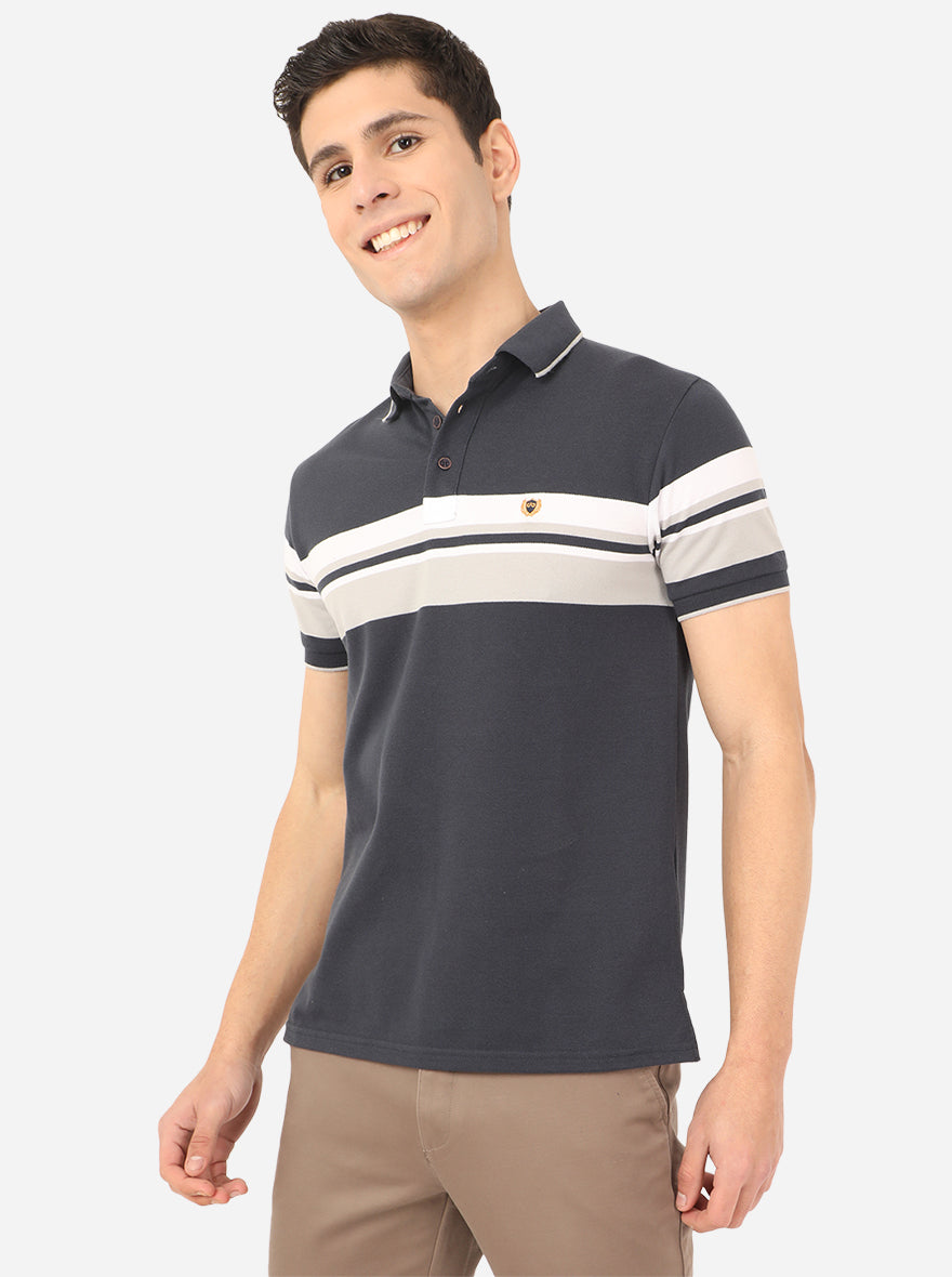Dark Grey Striped Slim Fit Polo T-Shirt | JadeBlue