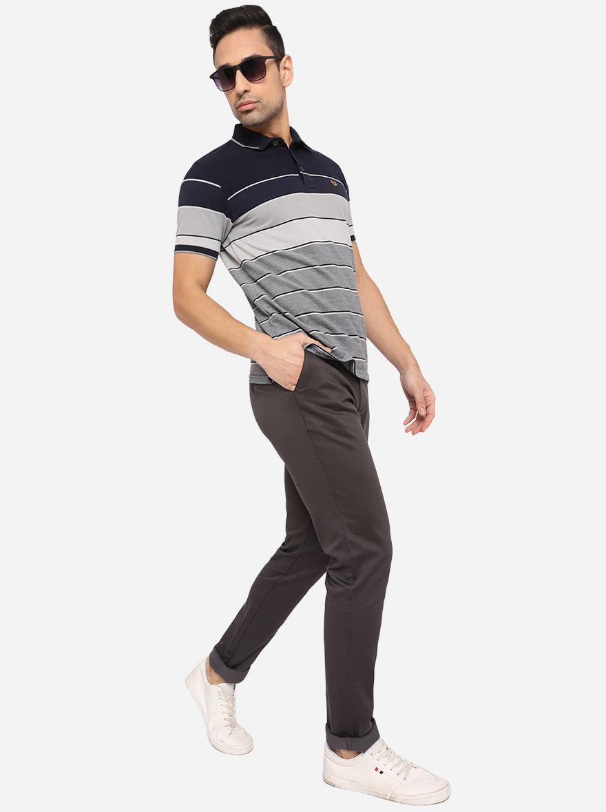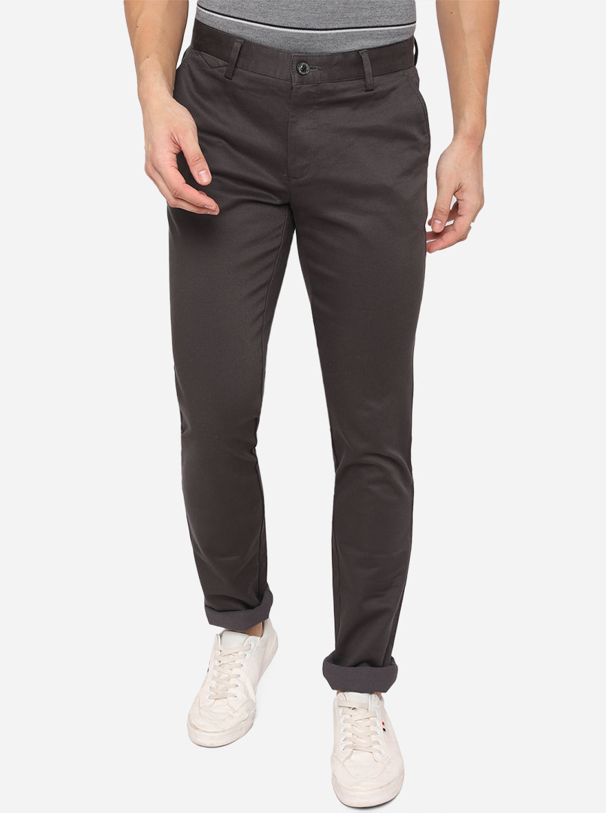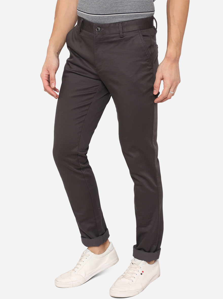 Dark Grey Solid Uno Fit Casual Trouser | JadeBlue